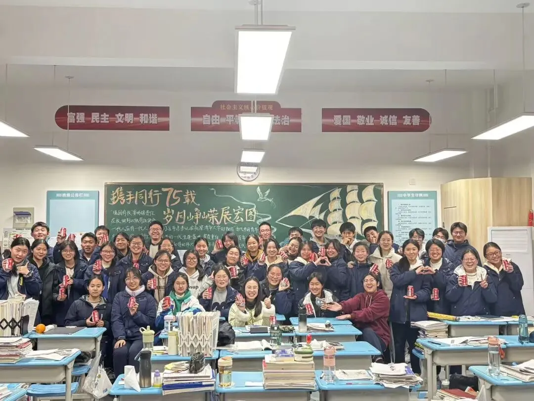 她将这份用心融入每一个重要节点。元旦前夕,班里每个孩子都收到了印有自己名字的可乐和专属幸运词;端午佳节,班级门口的巨型粽子成了独特风景,同学们轮流“顶粽子”,将“一举高粽”的美好寓意融进欢笑,每人腕间还系上五彩绳,系着平安,也系着对高考的期许。