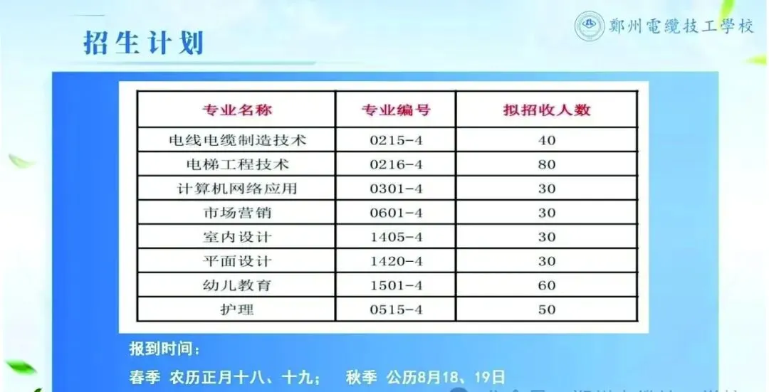 学校始建于1959年,是由国家一机部批准创建的公办职业学校、郑州市事业单位登记管理局登记注册的二类事业单位。学校位于郑州市中原区颍河路70号,地理位置优越,交通便利。现有一个教学区,共有标准化教室40间,实习实训场所占地面积3000余平方米。校内实训教学设备可同时满足1200人的教学需要和年均800人的社会培训需要。学校作为电线电缆专业、电梯专业的特色学校,教学及实验设备先进,教学设施布局合理,功能齐全,文化氛围浓厚;主要开设有电线电缆制造技术、电梯工程技术、计算机网络应用、幼儿教育、护理等8个专业。