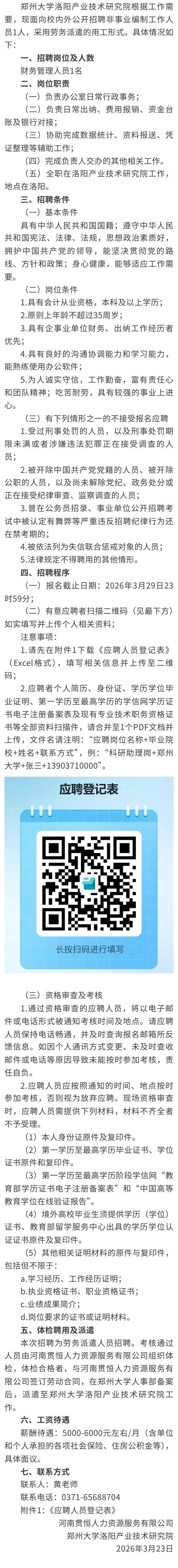 郑州大学南校区招聘工作人员,月薪6000,五险一金