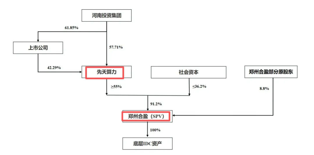先天算力拟自行或联合其他投资人收购郑州合盈数据有限责任公司(简称“郑州合盈”)合计 91.2%股权,交易作价为人民币 94.12亿元,其中先天算力收购的股权比例将不低于郑州合盈全部股权的 55%。