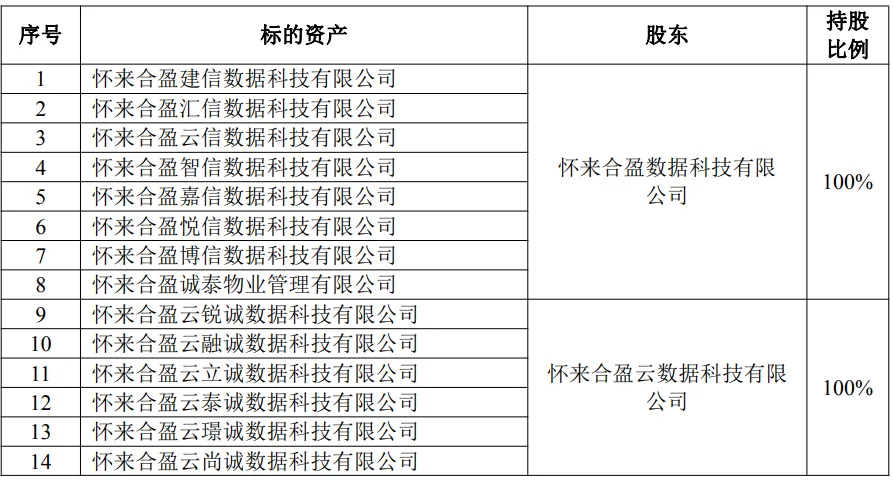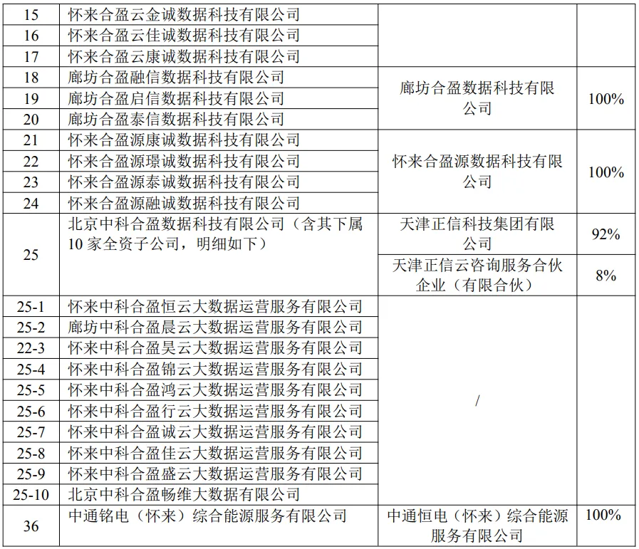 本次交易标的包括中科合盈及相关的运营公司、项目公司、物业公司、运维公司共计 36 家分子公司。