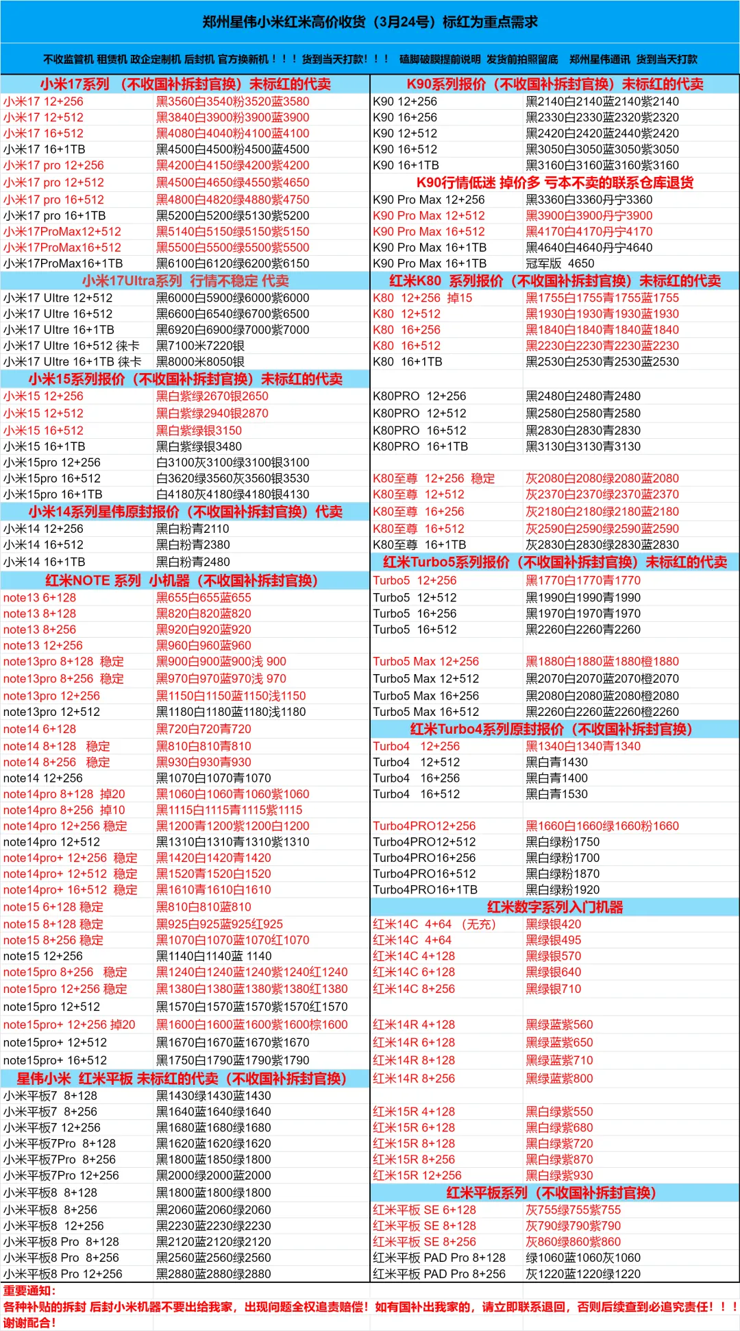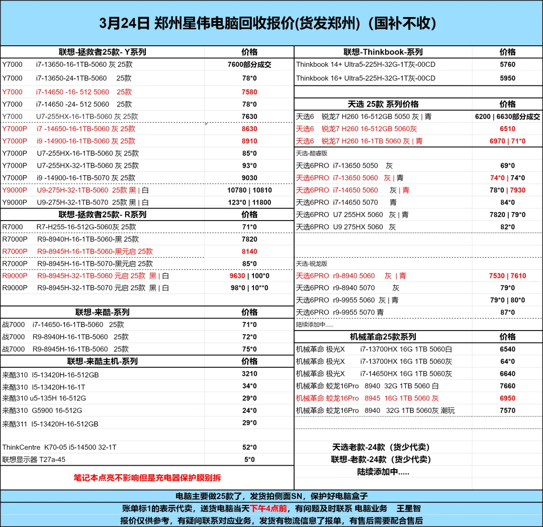 郑州丽丽通讯百亿回收报价单