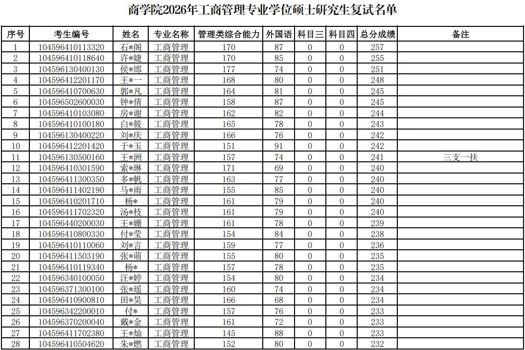 郑州大学2026年MBA复试分数线及复试名单已公布,需要的同学及时关注!