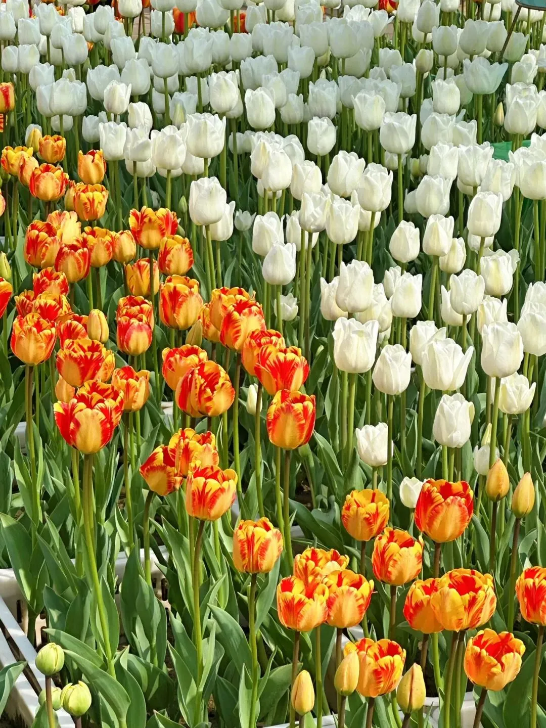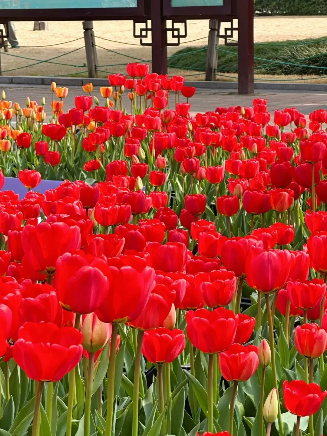 一进园就被眼前的花海狠狠惊艳,成片成片的郁金香开得热烈又灿烂,足足10万株铺满园区,就算拍满18张实况图,也完全装不下这份春日浪漫。
