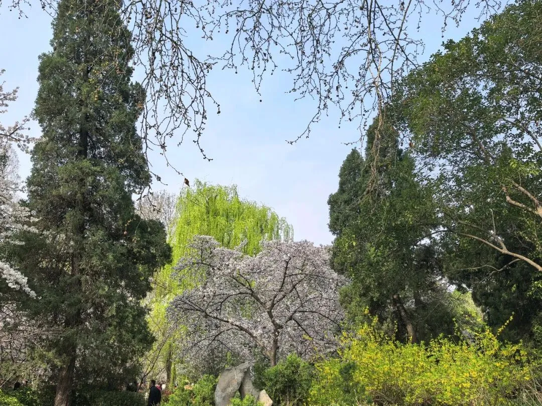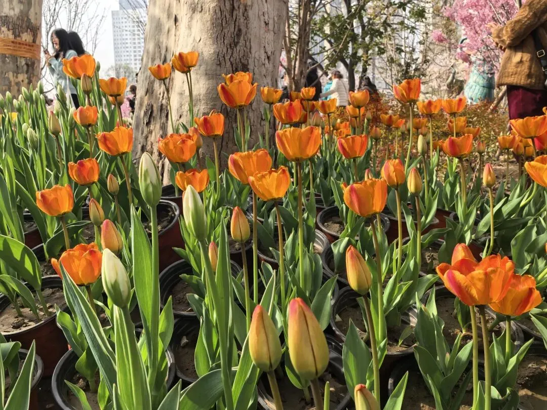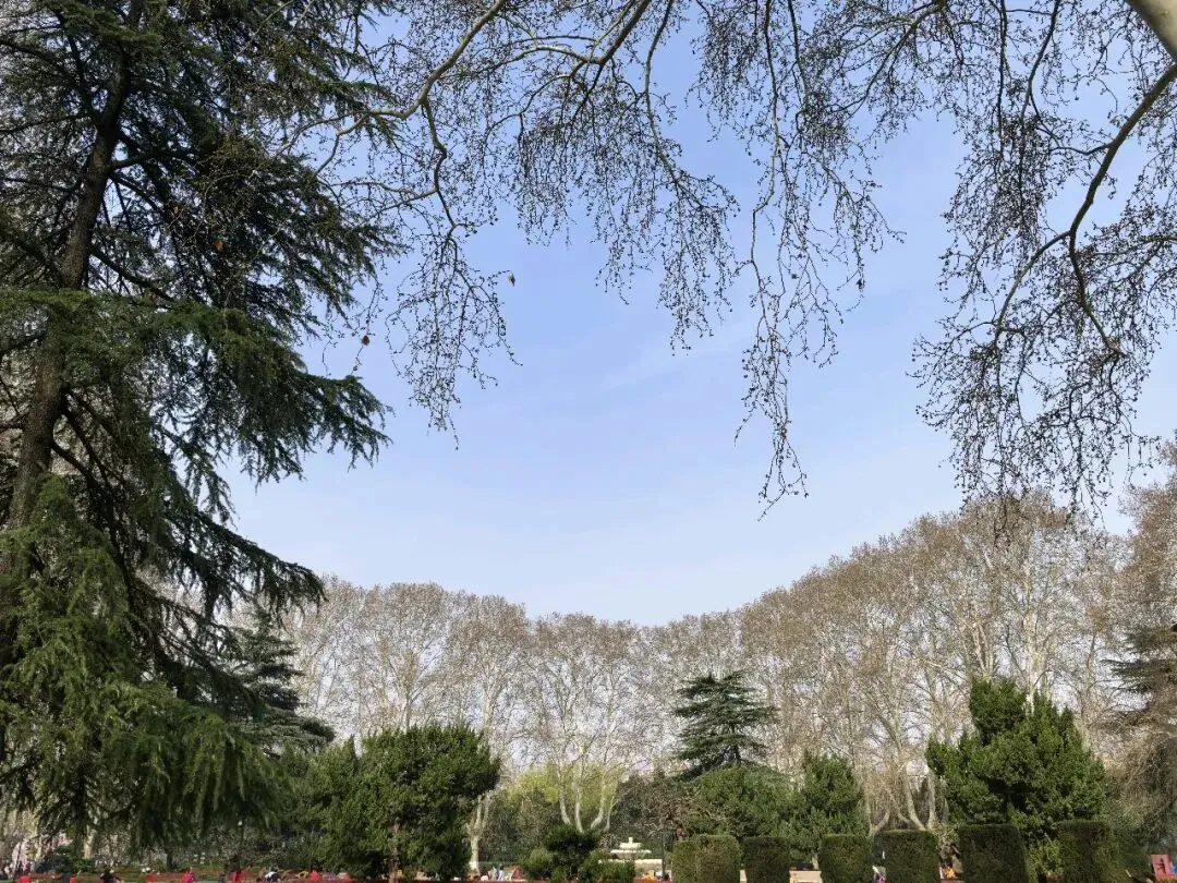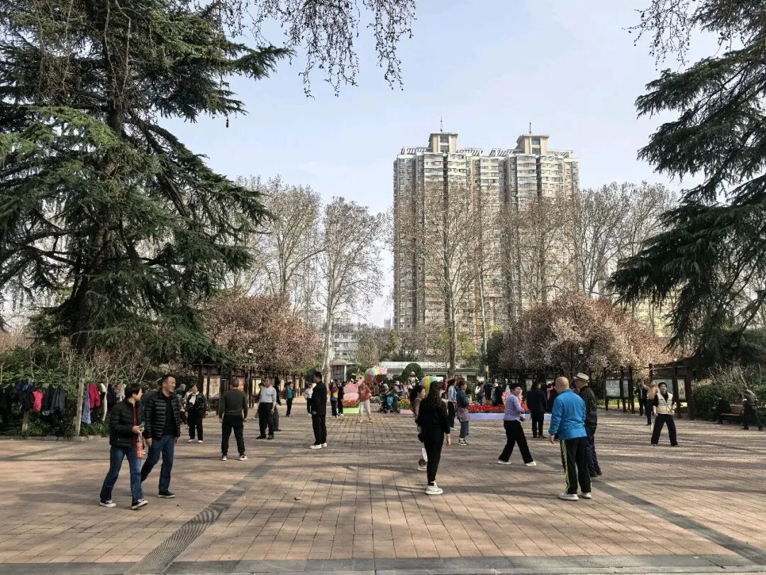 饭后到附近的人民公园走走,进了南门,迎面是一棵大树,大概有三四个人合抱粗,四周塌下的树枝靠粗杆子支撑着,看了介绍,是有170多年的国槐树,应该是人民公园的镇园之宝。进了园去,这是老郑州人的乐园,人们在公园里打拳跳舞、唱戏听曲、走路锻炼……现在正逢各色花开,桃花正艳,梅花正红,郁金香五颜六色,拍照的、赏花的、遛娃的人山人海,真正是发挥作用的综合性公园。