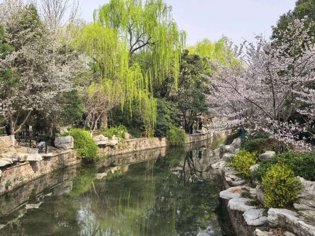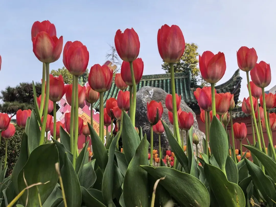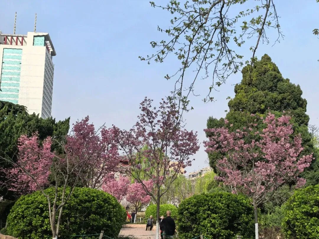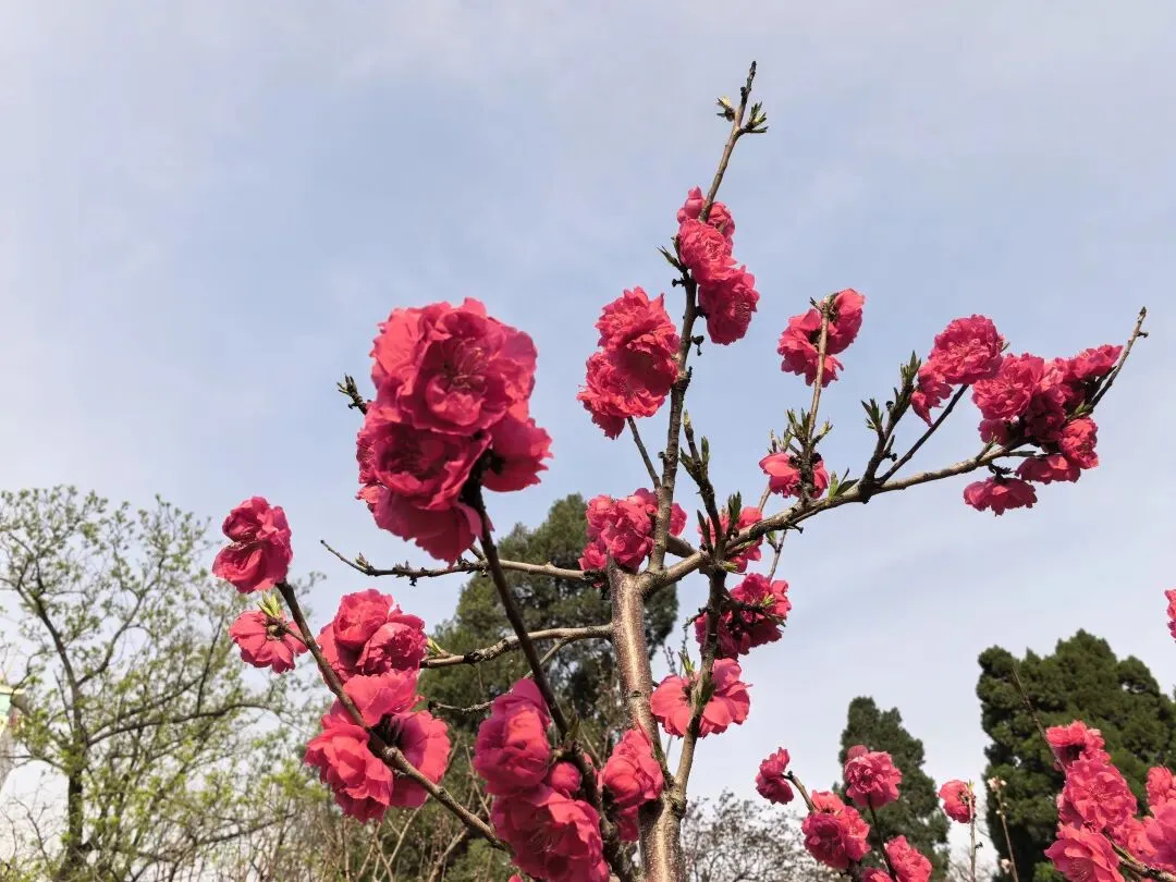 饭后到附近的人民公园走走,进了南门,迎面是一棵大树,大概有三四个人合抱粗,四周塌下的树枝靠粗杆子支撑着,看了介绍,是有170多年的国槐树,应该是人民公园的镇园之宝。进了园去,这是老郑州人的乐园,人们在公园里打拳跳舞、唱戏听曲、走路锻炼……现在正逢各色花开,桃花正艳,梅花正红,郁金香五颜六色,拍照的、赏花的、遛娃的人山人海,真正是发挥作用的综合性公园。