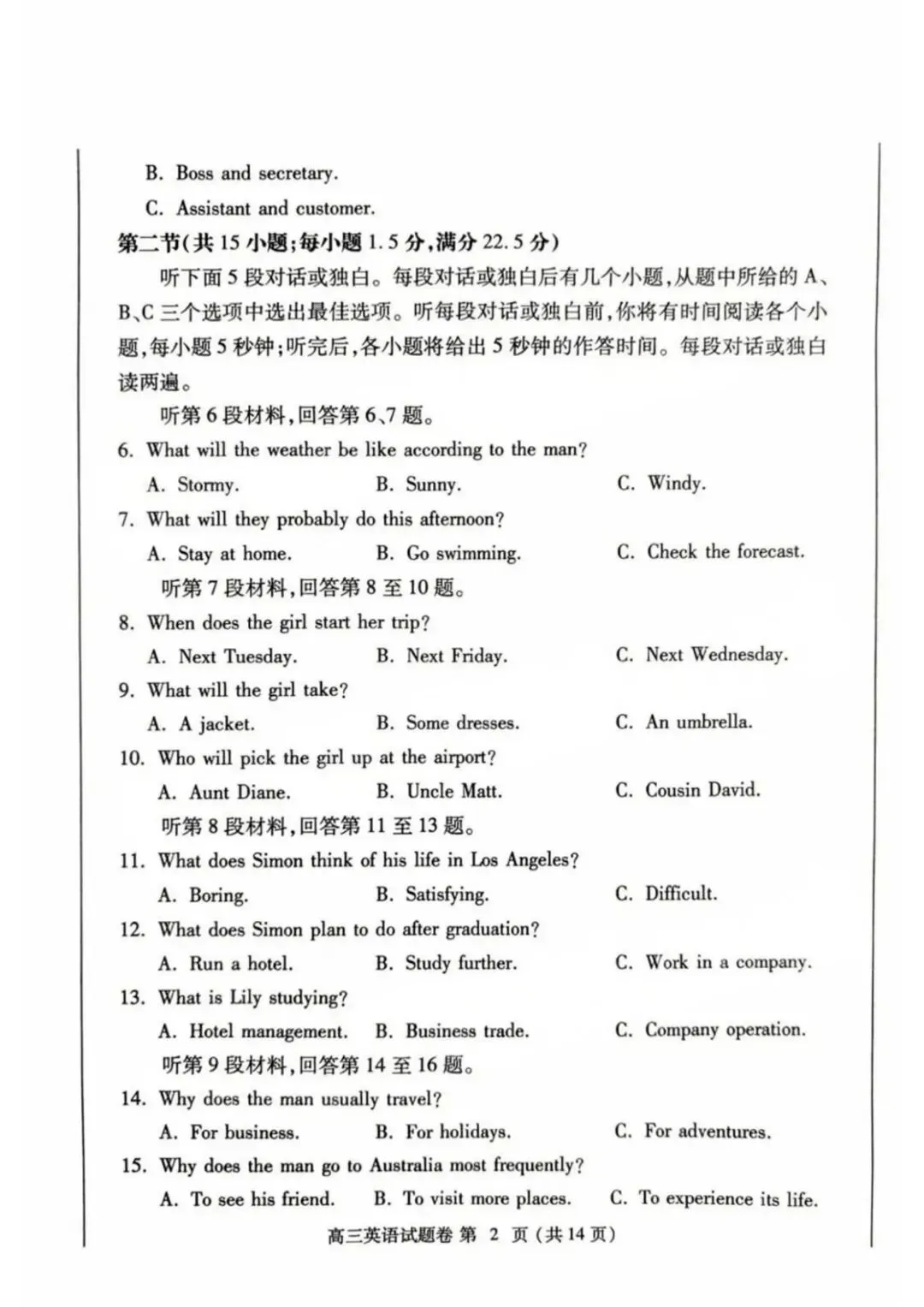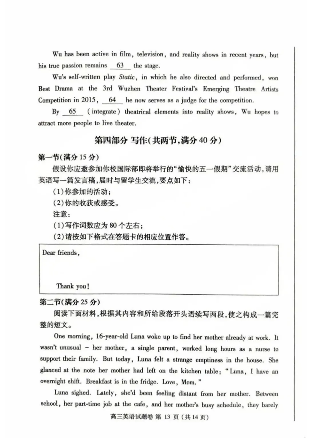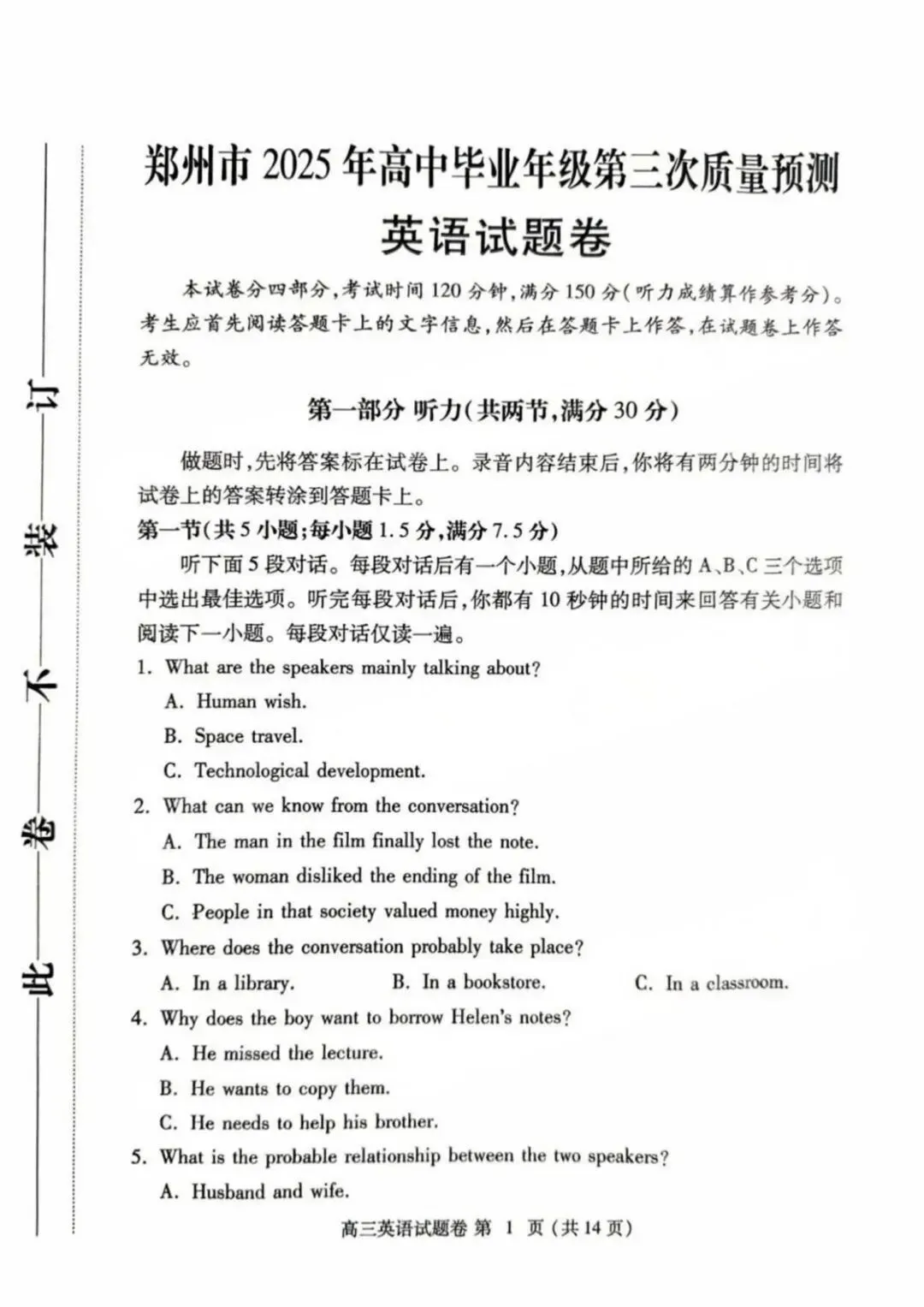 >河南省郑州市2024-2025学年高三下学期第三次质量预测(郑州三模)英语