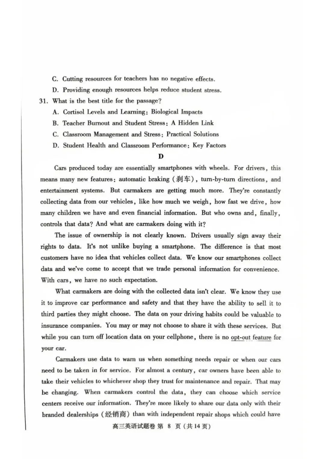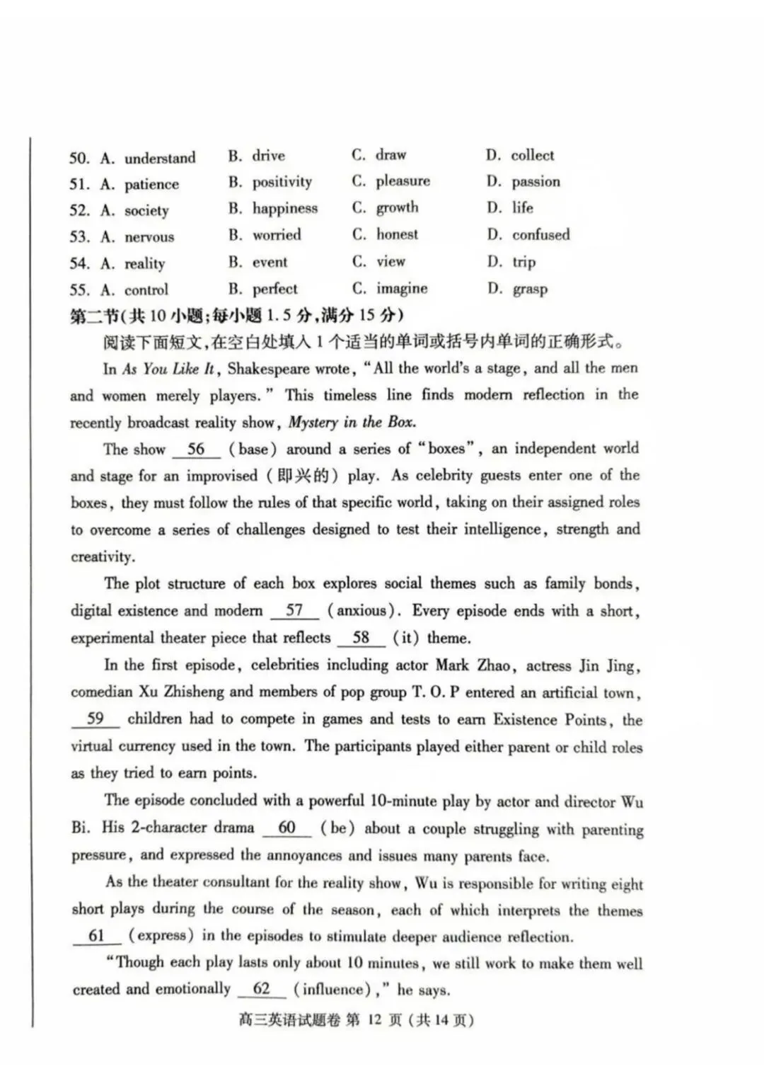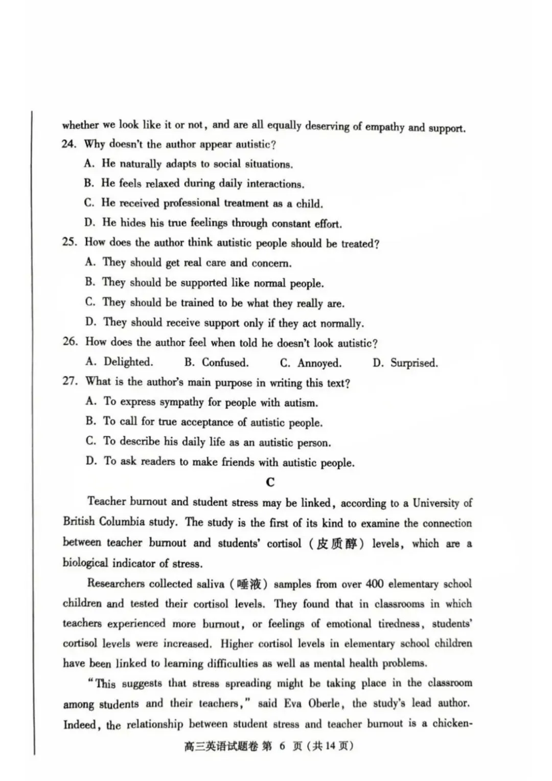 >河南省郑州市2024-2025学年高三下学期第三次质量预测(郑州三模)英语
