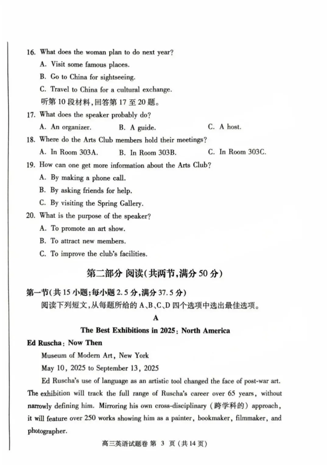 河南省郑州市2024-2025学年高三下学期第三次质量预测(郑州三模)英语
