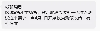 工商银行区域e贷和市场贷,暂时取消通过新一代(经营快贷)准入测试这个要求,自4月1日开始恢复测额政策。六天时间;郑州工商银行能够冲刺完成多少任务量;大家拭目以待!自从工商银行纯线下的业务有了准入测试这个要求后;很多业务都因为主借人网贷、小贷、征信查询过多而被拒之门外。以至于很多想靠着工商银行解燃眉之急的客户被拒之门外。就这一条,直接解决了最近大半年最头疼的问题,不管是急着用钱周转的商户,还是冲业绩的同行、银行网点,终于不用再卡死在一道门槛上了。自从工行线下业务加上准入测试要求,业内真的是一片无奈,懂的都懂,完全是“旱的旱死,涝的涝死”。很多郑州本地的老板,正经开门做生意,有实体店、有流水,就是平时周转开过几笔网贷、小贷,或者近期查征信多了点,明明资质没问题,就是过不了线上测试,直接被拒。客户急得团团转,等着钱进货、发工资、交房租,到处碰壁没办法; 我们做业务的也焦头烂额,对接好的客户,资料全备齐了,临门一脚卡在经营快贷没通过; 银行更无奈,一季度开门红任务,好多网点差一大截,有额度有客户,就是放不出去,想发力都没处使。有的网点不用卡这个测试,忙到客户经理连下户的空都没有;有的网点卡死要求,直接没业务可做,只能干等着,这局面拖了太久了。这次政策不是单个网点,郑州市区+下辖县域工行网点都覆盖;满打满算就六天时间 ,正好是开门红最后冲刺阶段,银行这边也在全力赶进度,流程能简则简,下户、审批都会提速。之前因为准入测试被拒的老板,别再等了! 近期急着用钱周转、之前不敢试的,现在赶紧动起来! 不用再怕网贷、小贷、征信查询多卡死,只要你在郑州正经做生意、有真实经营场地、营业执照合规,有稳定还款能力 ,就能正常申请。这种临时放宽的政策,窗口期很短,不管是客户还是各位同仁;抓紧这6天冲,别等恢复原政策了再后悔。宇宙第一行;一定有奇迹。这次工行的政策调整,真的是雪中送炭,彻底打破之前的僵局,再也不是一边忙死、一边闲死的状态了。短短六天,郑州工行全网点发力,到底能冲多少业绩,咱们拭目以待,但对咱各位老板、各位同仁来说,能拿到低息钱、解决燃眉之急,有业绩才是最实在的。工以至诚助奋进,郑州商户迎良机,同仁冲刺开门红,时不我待抢先机!