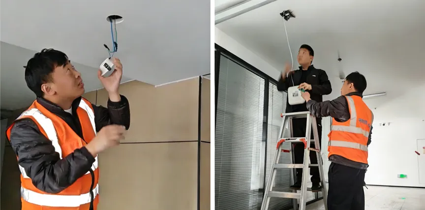 前期抢抓窗口期,提前布设管。施工前期,由于现场路由跨度大、线路分布广泛且点位分散,项目实施面临较大难度。团队抢抓吊顶尚未封闭的关键窗口期,提前完成光电复合缆的管线布设工作,为后续设备的快速安装奠定坚实基础。