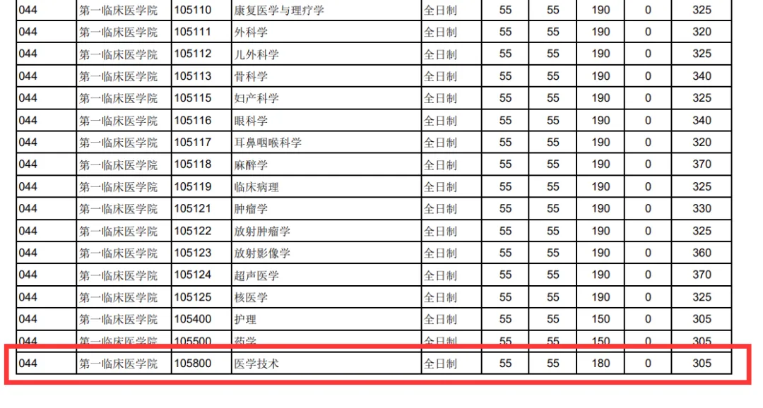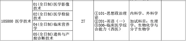 医技总招生 27 人,2026 年总分数线 305 分,单科线 55 分,专业课线 180 分。