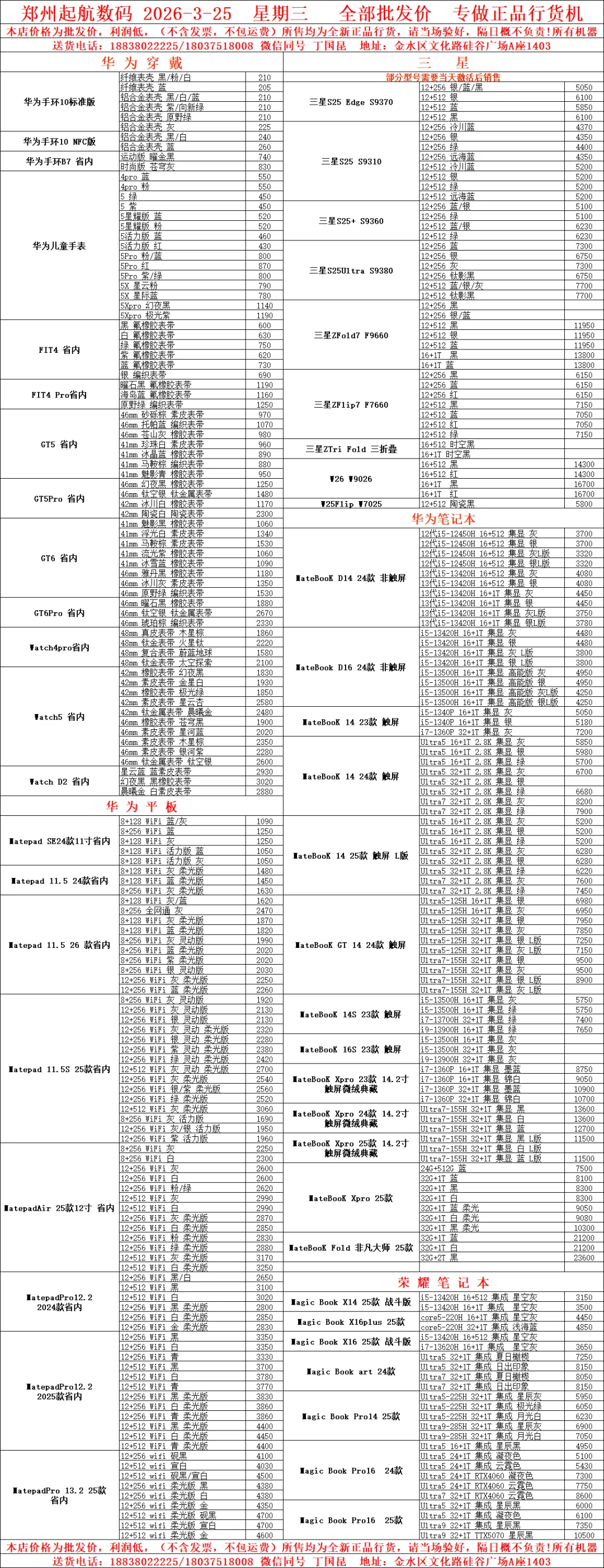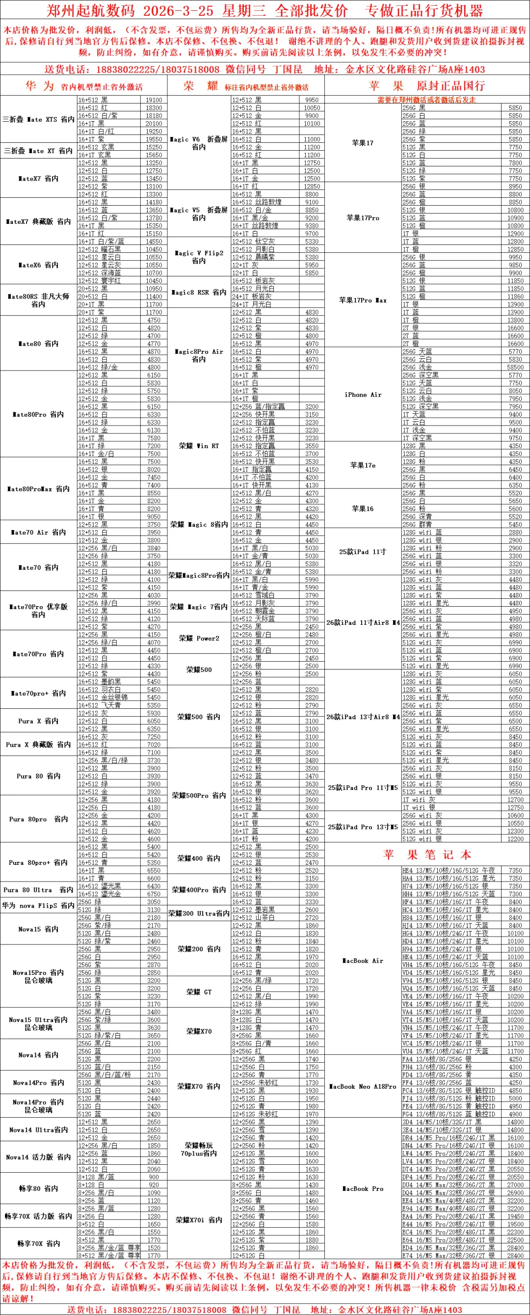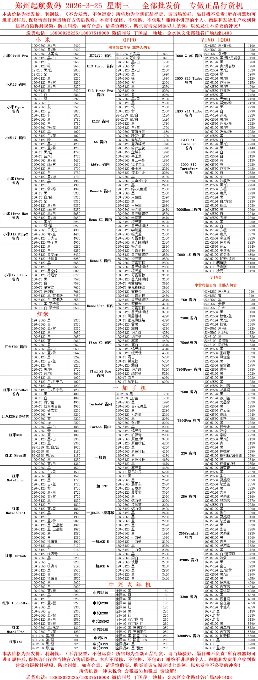 每天手机最新行情 请关注微信每日推送微信公众号:郑州起航数码公司地址:郑州市金水区文化路82号硅谷广场A座1403