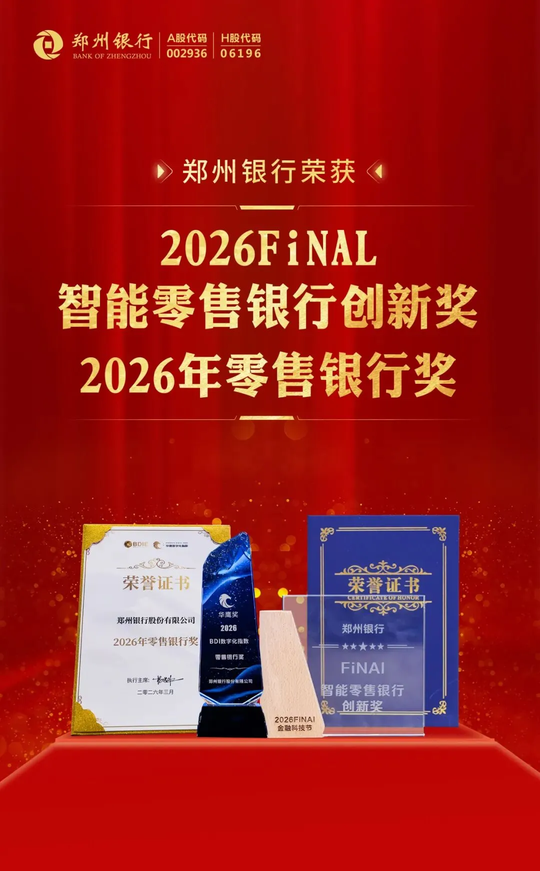 近日,第九届BankAI银行人工智能峰会、第十一届亚太银行发展创新大会在上海举办,凭借零售金融领域的创新实践,郑州银行荣获“2026FiNAL智能零售银行创新奖”和“2026年零售银行奖”两项大奖。