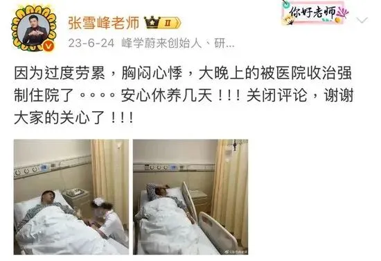 在这一年的夏天,张雪峰曾因为“过度劳累,胸闷心悸”被医院收治强制住院。
