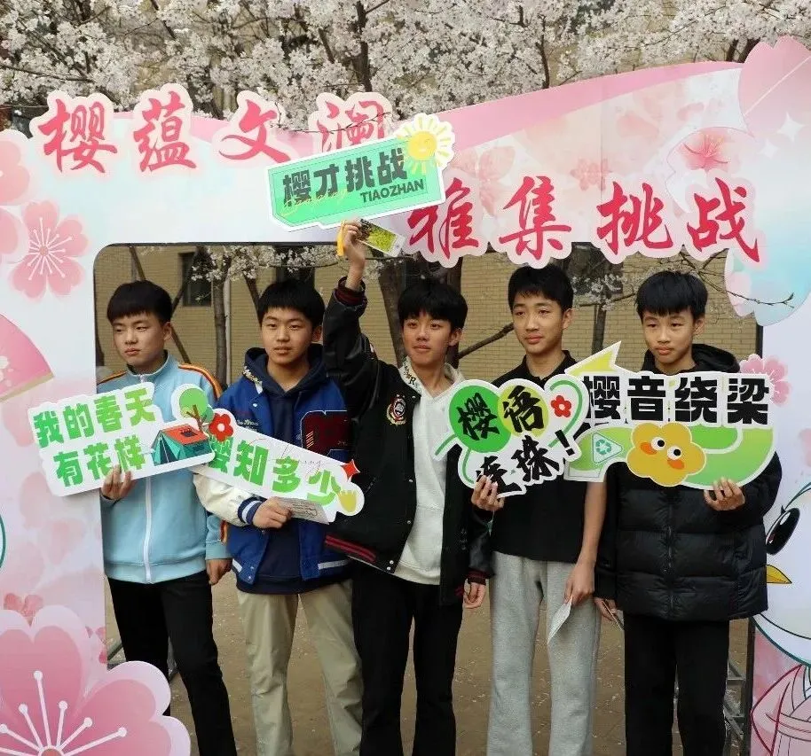 一位八年级同学感慨道:“这次樱花游园会真的很有意义。从‘飞花令’的诗词交锋,到‘英汉互译’的趣味挑战,每一个点位都让我收获满满。和老师、同学一起打卡闯关、合影留念,不仅学到了知识,更感受到浓浓的温暖。”