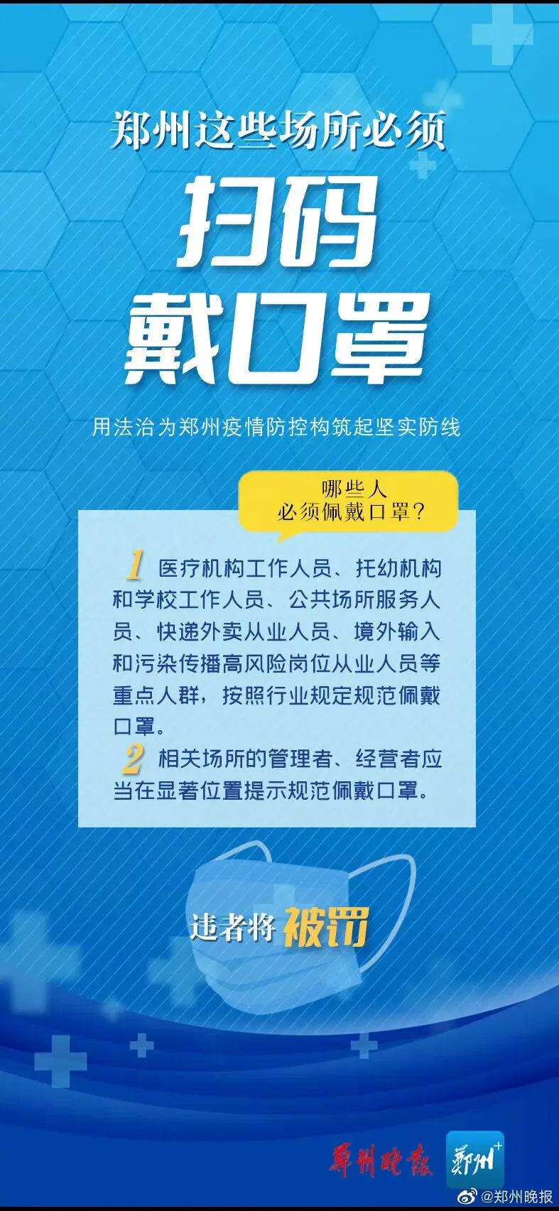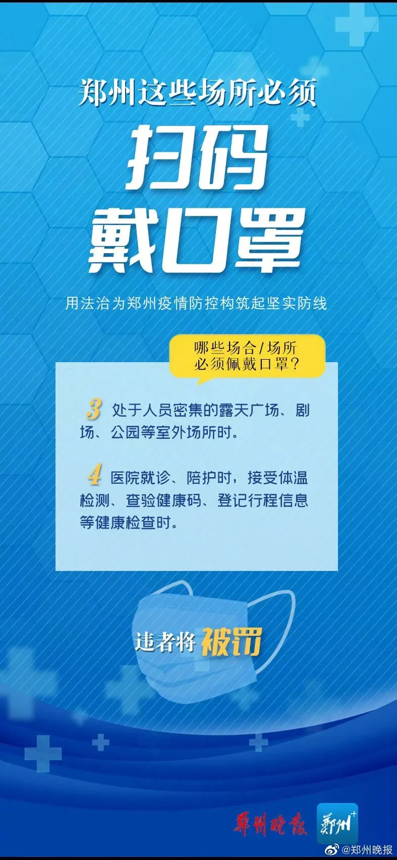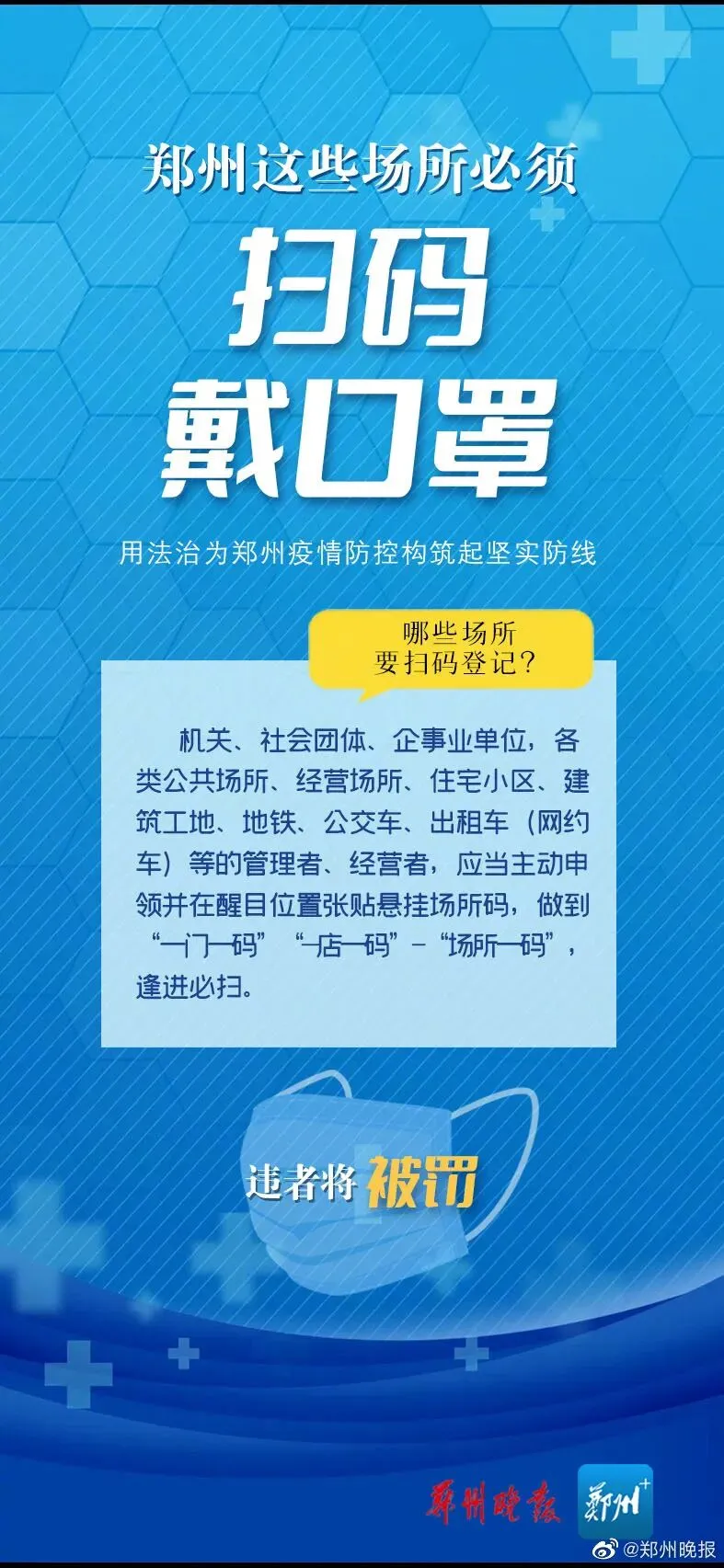 >郑州这些场所必须扫码戴口罩,违者将被罚!