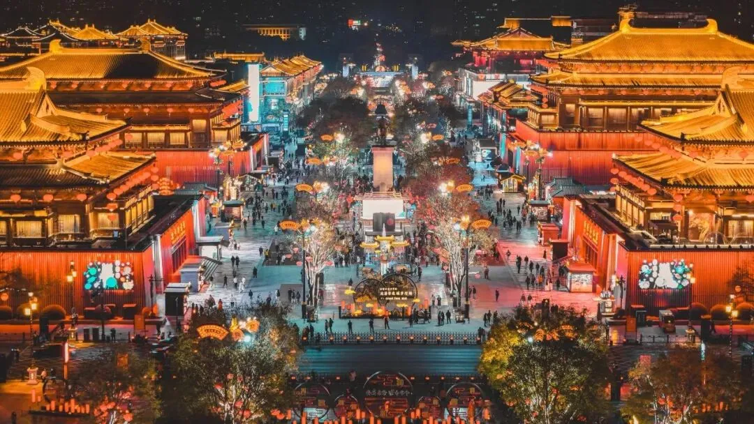 当夜幕降临,整条街道的灯火次第亮起,鎏金灯光包裹着唐风建筑,璀璨得如同星河落人间。不倒翁小姐姐的衣袖轻扬,街头的唐乐与演出轮番上演,身着汉服的游人擦肩而过,叫卖声、欢笑声、音乐声交织在一起。一脚踏入,就像闯进了盛唐的上元佳节,连风都带着长安的温柔,随手一拍,都是刷爆朋友圈的大片。