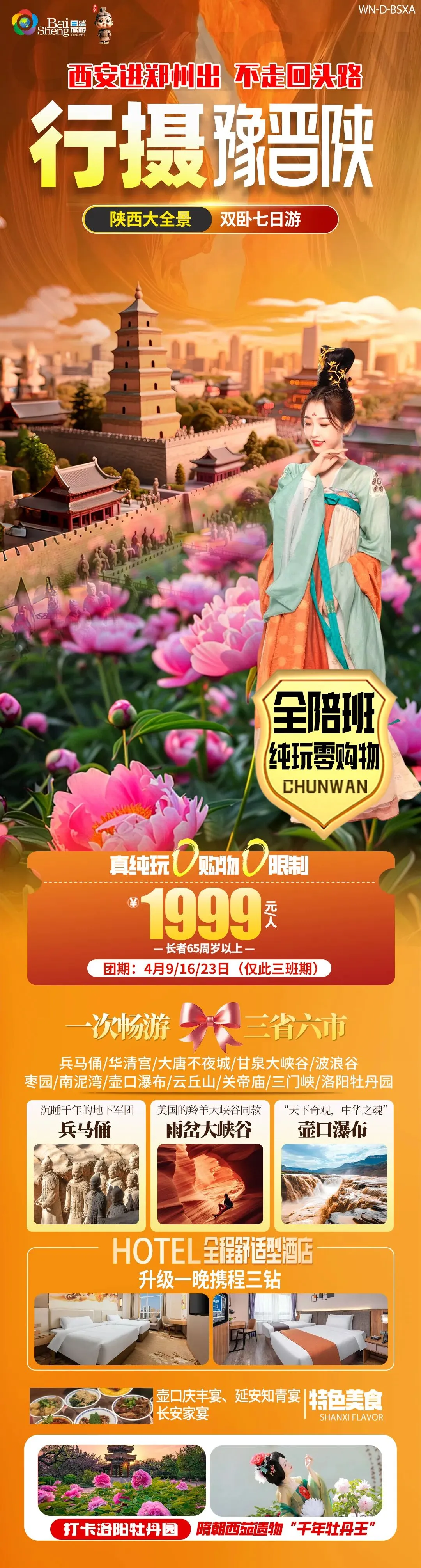 不用再分开请假跑三省了,这趟7天行程,一次性打卡陕西、山西、河南三省的顶流景点,从世界奇迹到自然奇观,从千年古都到红色圣地,从盛唐风华到国色牡丹,你想逛的,我们都安排上,一次出行,不留遗憾。