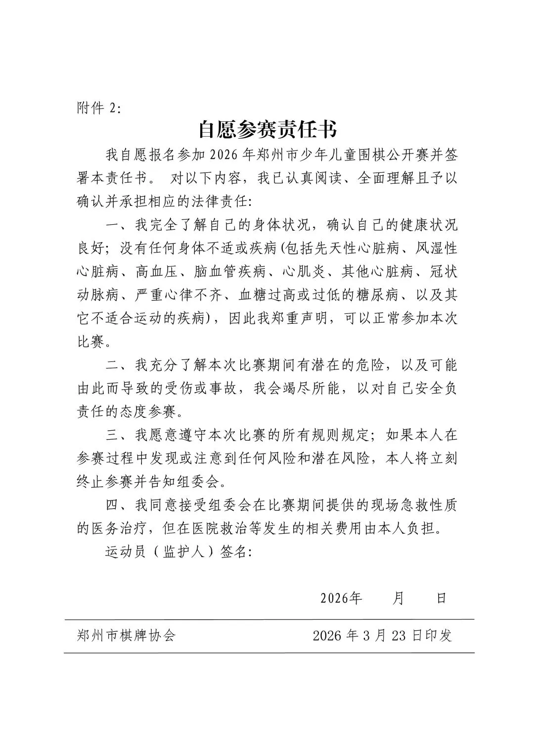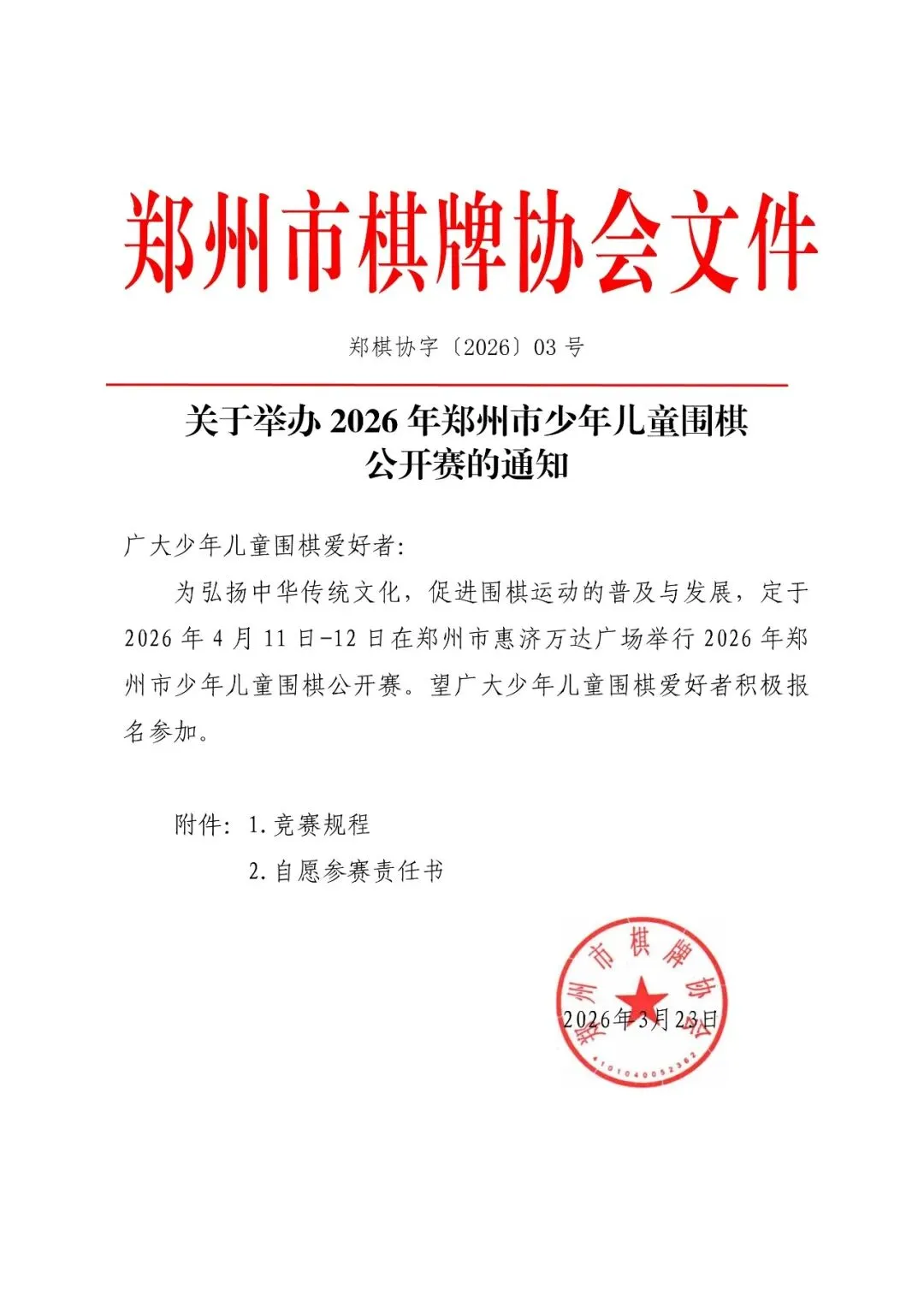 关于举办2026年郑州市少年儿童围棋公开赛的通知