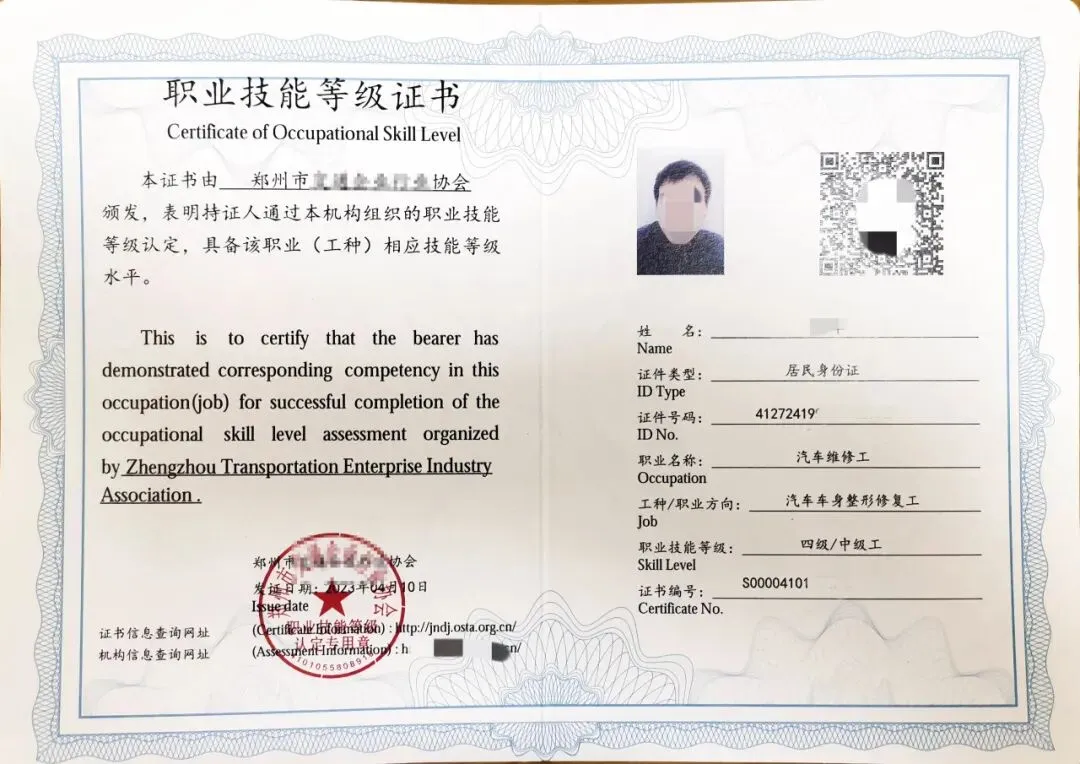 汽车车身整形修复工证