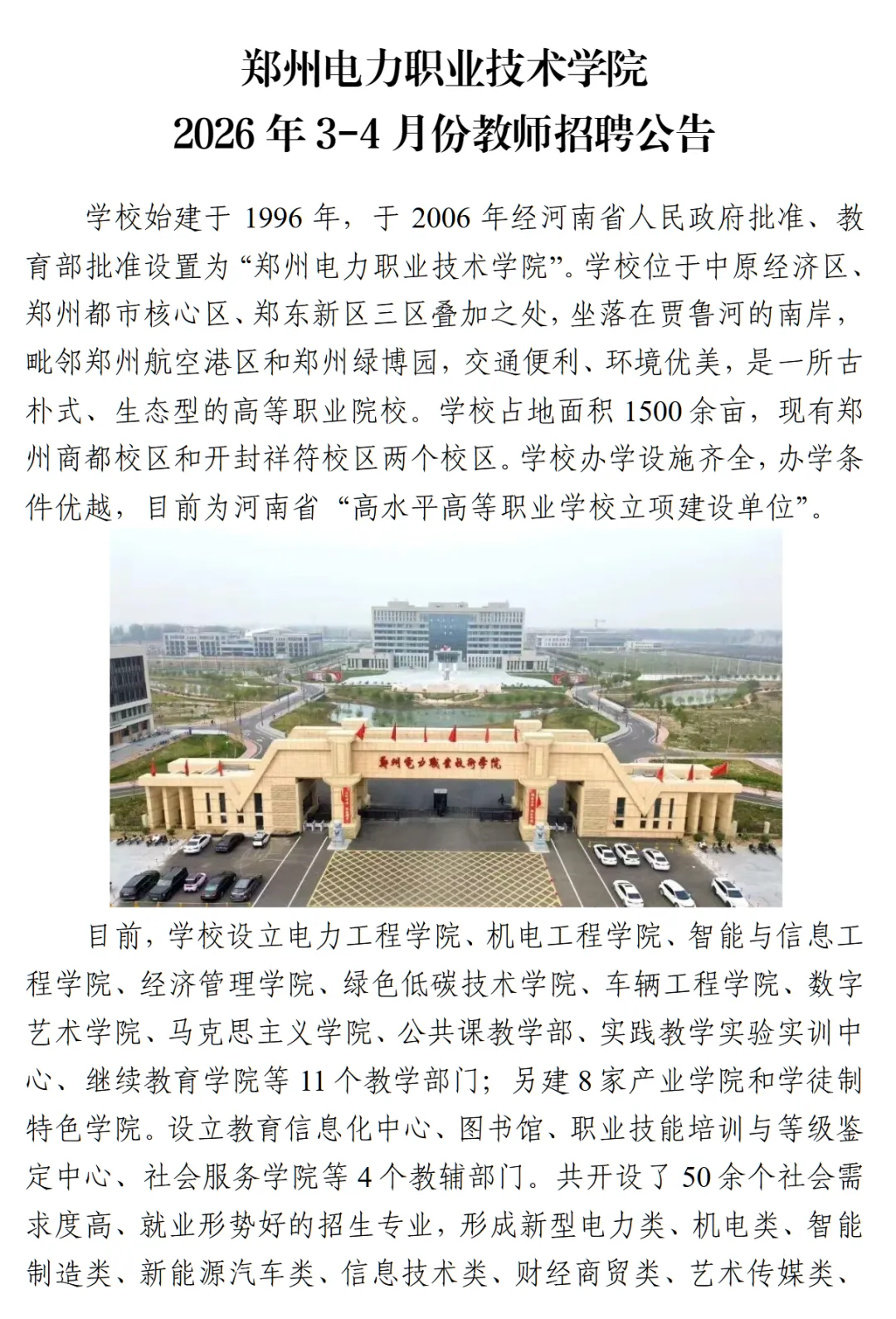 >21人!郑州电力职业技术学院2026年教师招聘公告
