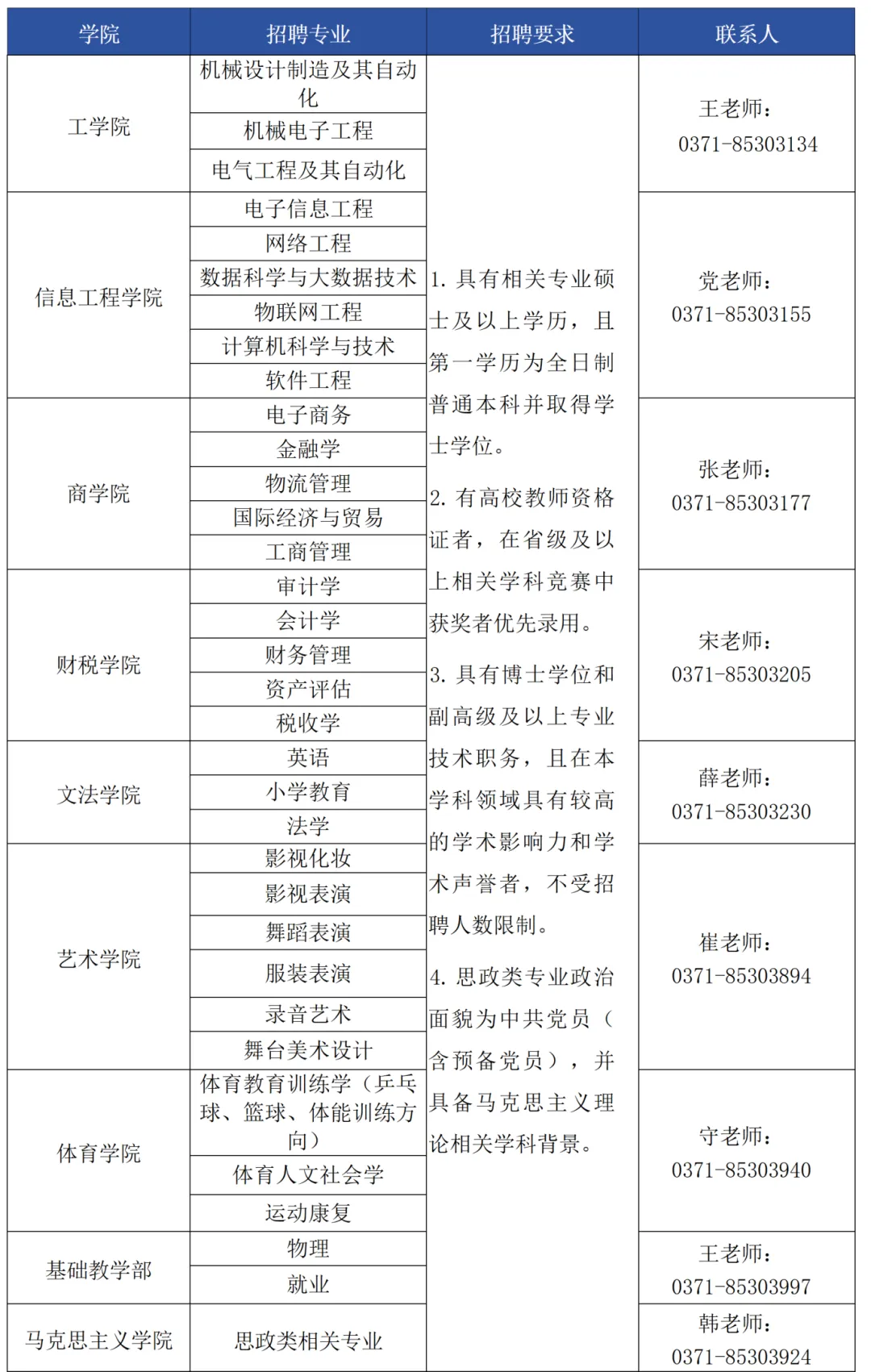 郑州工商学院是一所经教育部批准设立的全日制普通本科高校,现根据学校发展目标和师资队伍建设规划,面向社会公开招聘优秀人才,竭诚欢迎各界英才加入我校!1.遵守国家宪法和法律、品行良好。