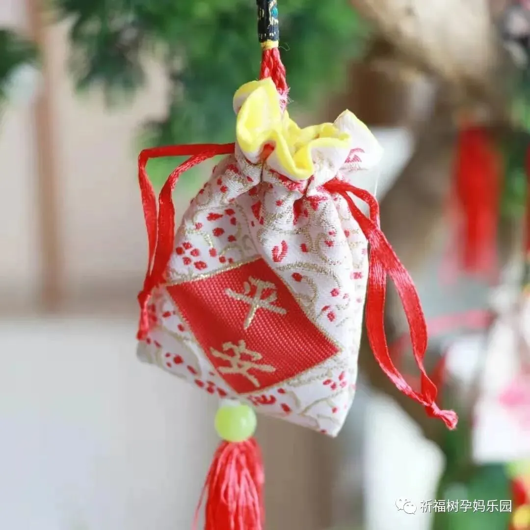 宝宝出生后,为宝宝挂上福袋,祝愿宝宝平平安安,健康喜乐。