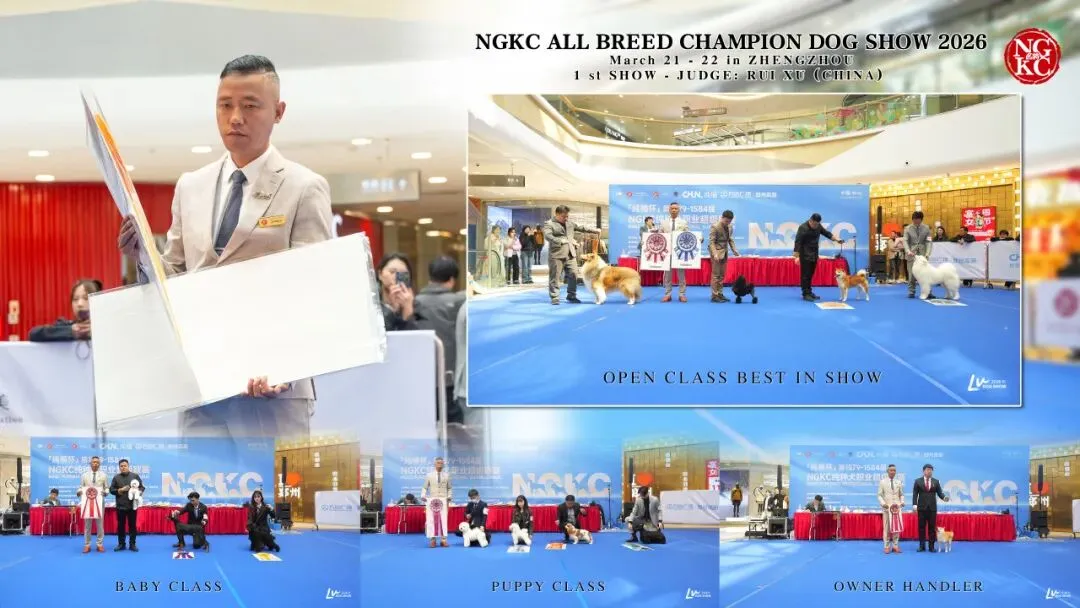 NGKC郑州站2026年3月21日全犬种A赛环,邀请到了审查员徐瑞先生。本期是由徐瑞先生定制的BIS审查视频,本站代表审查员祝贺本场各位选手斩获佳绩!