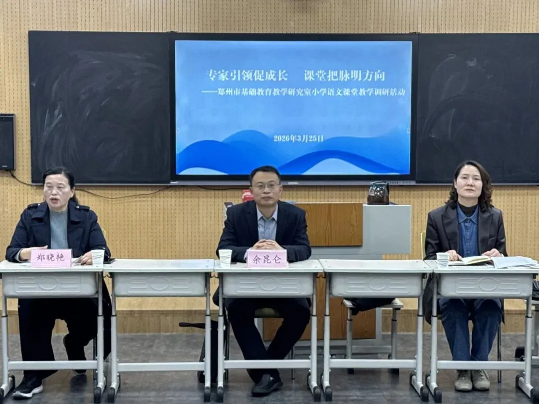 为深入贯彻落实新课程方案、新课标与新教材实施要求,扎实推进核心素养导向的语文课堂教学改革,切实提升语文学科教学质量与教师专业素养,3月25日上午,郑州市基础教育教学研究室语文教研员余昆仑老师来到郑州市中原区淮河路小学开展专项教学指导活动。郑州市中原区教育发展中心小学教研室语文教研员沙园园老师,淮河路小学党支部书记、校长郑晓艳及语文教师全程参与。