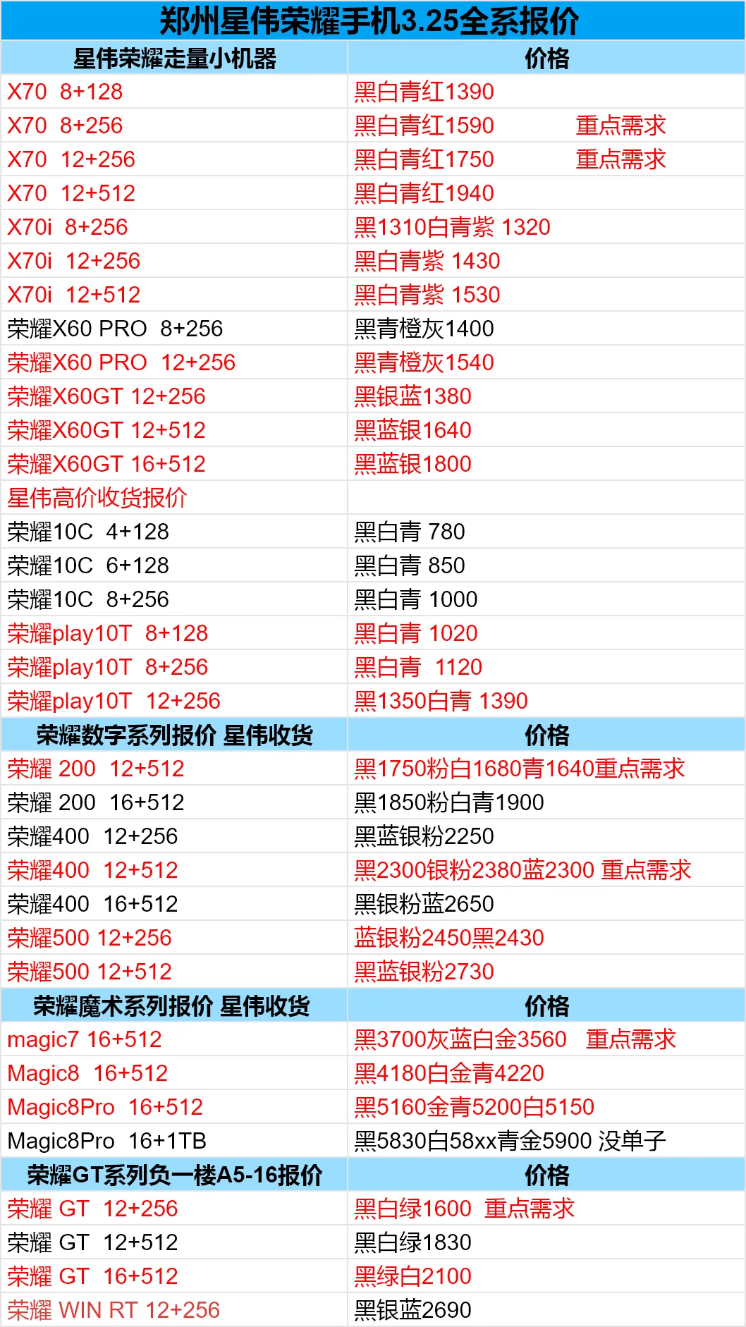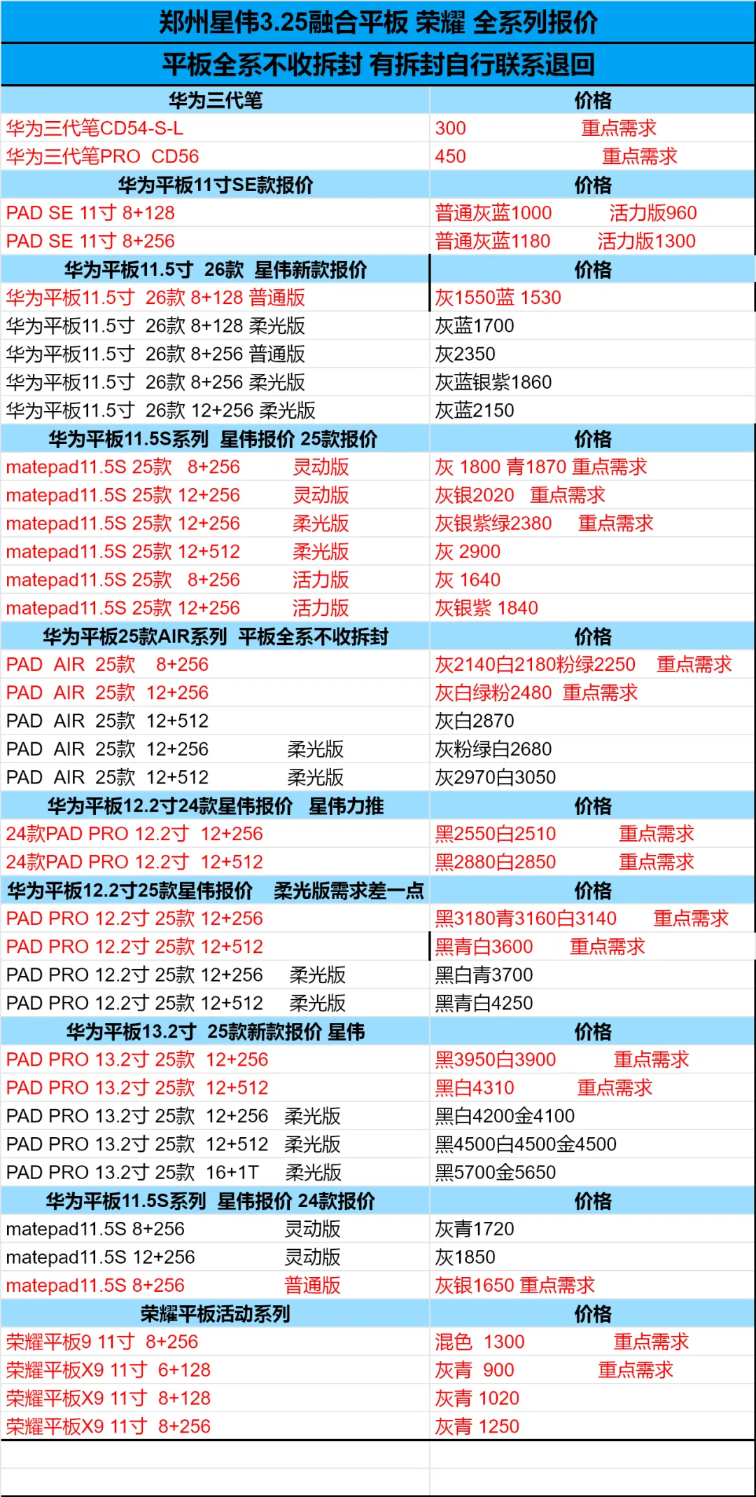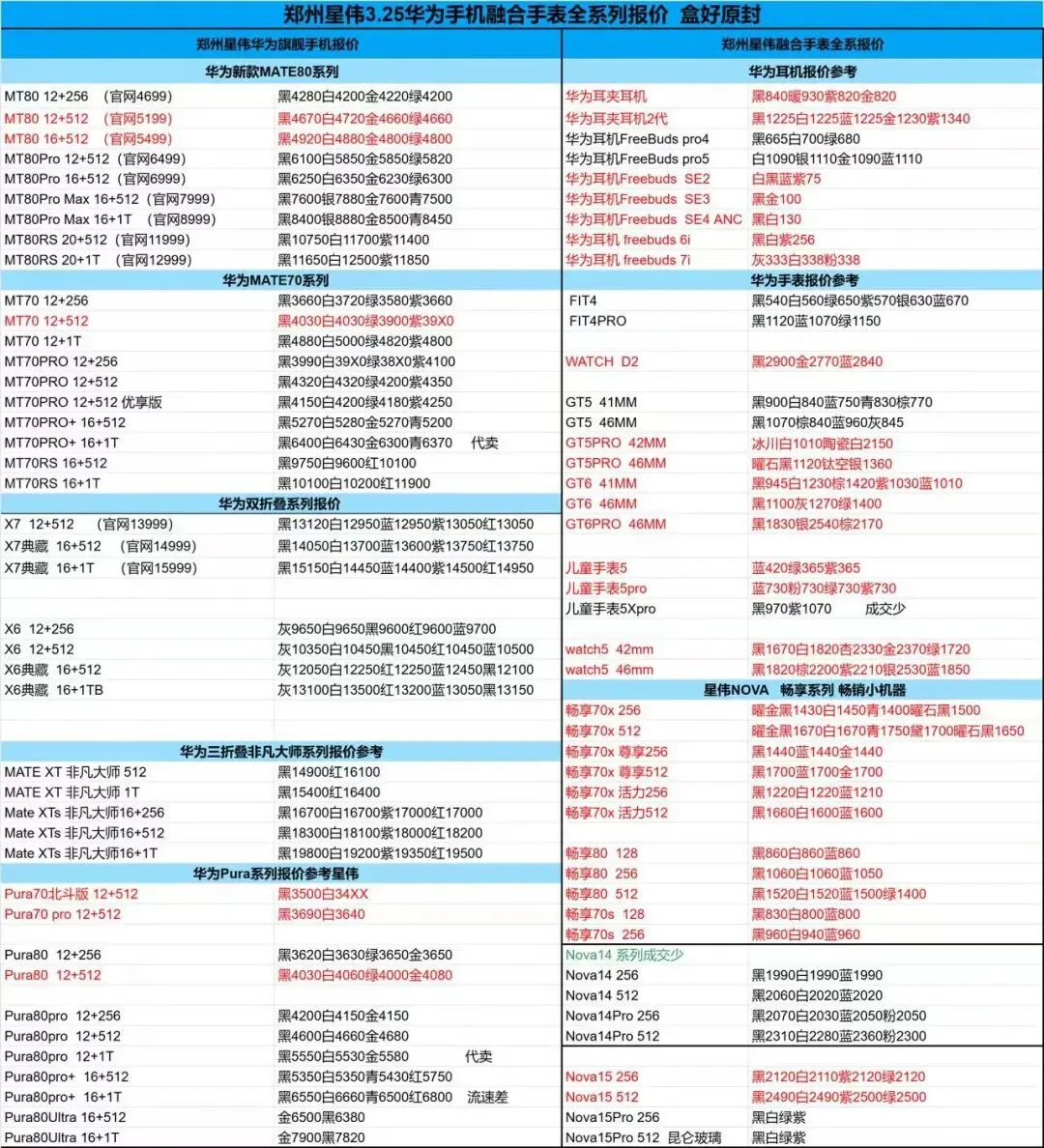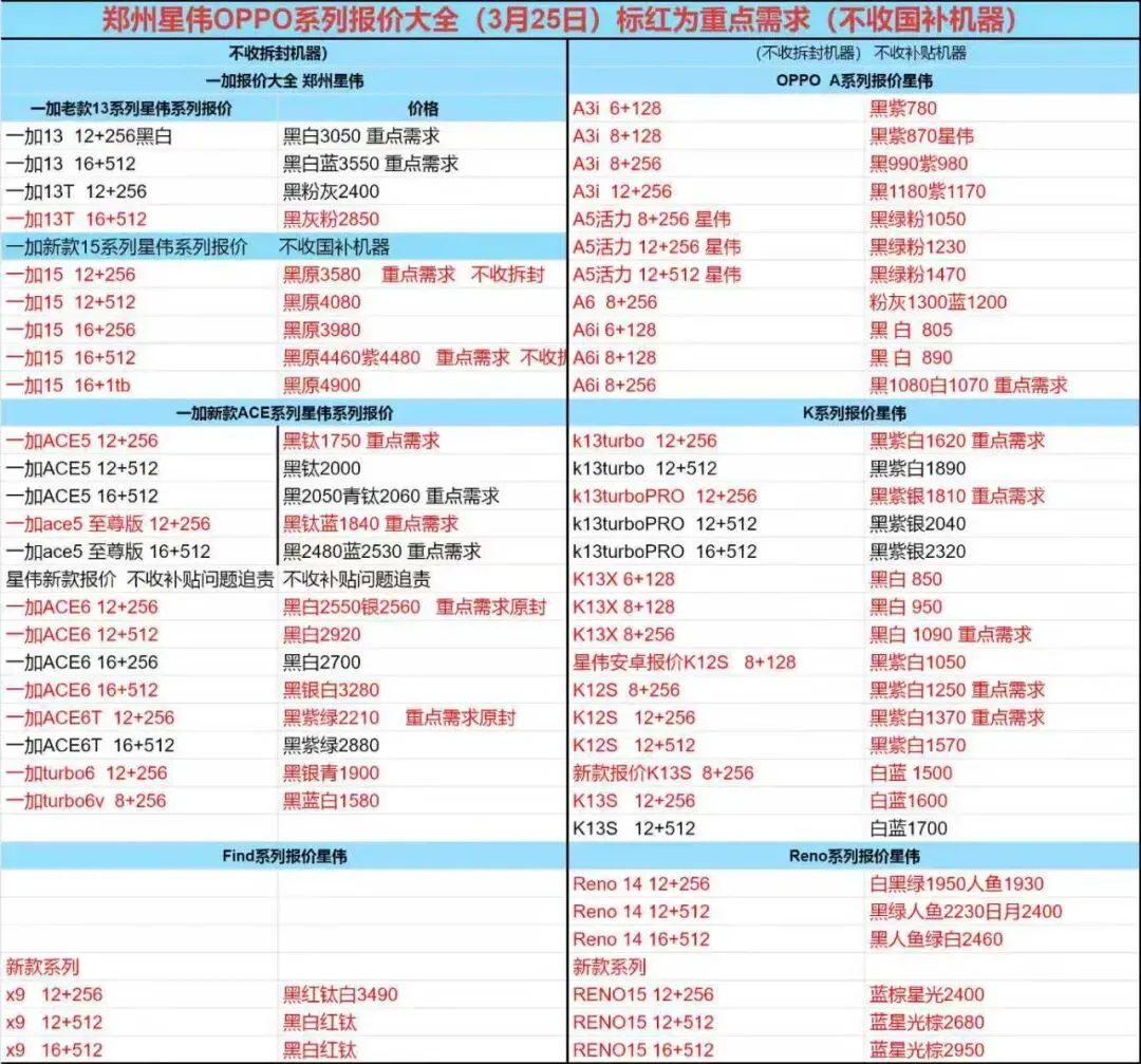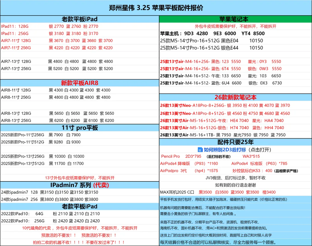 郑州轮聚通讯 2026年3.25日数码报价更新