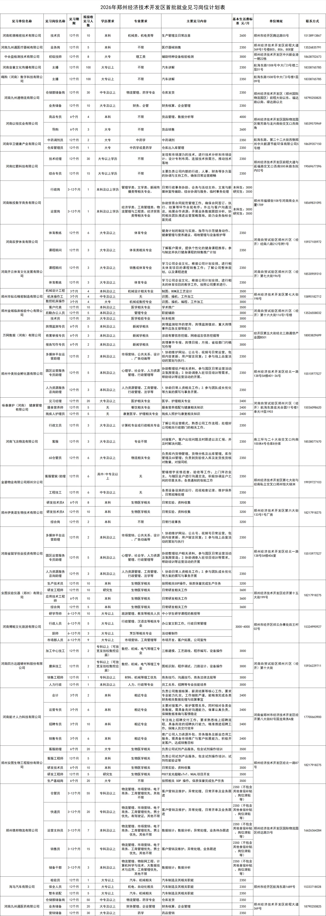 今年,郑州经开区继续根据《河南省就业见习管理办法》精神,面向2026年我区就业见习单位征集就业见习岗位,帮助高校毕业生等青年群体提升就业能力,首批公布843个就业见习岗位。