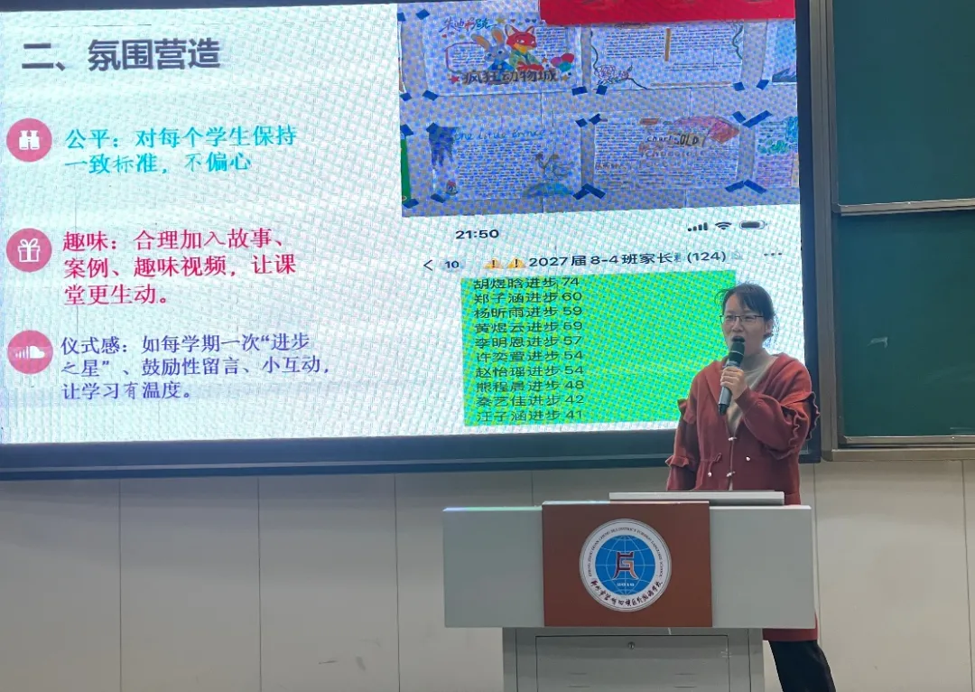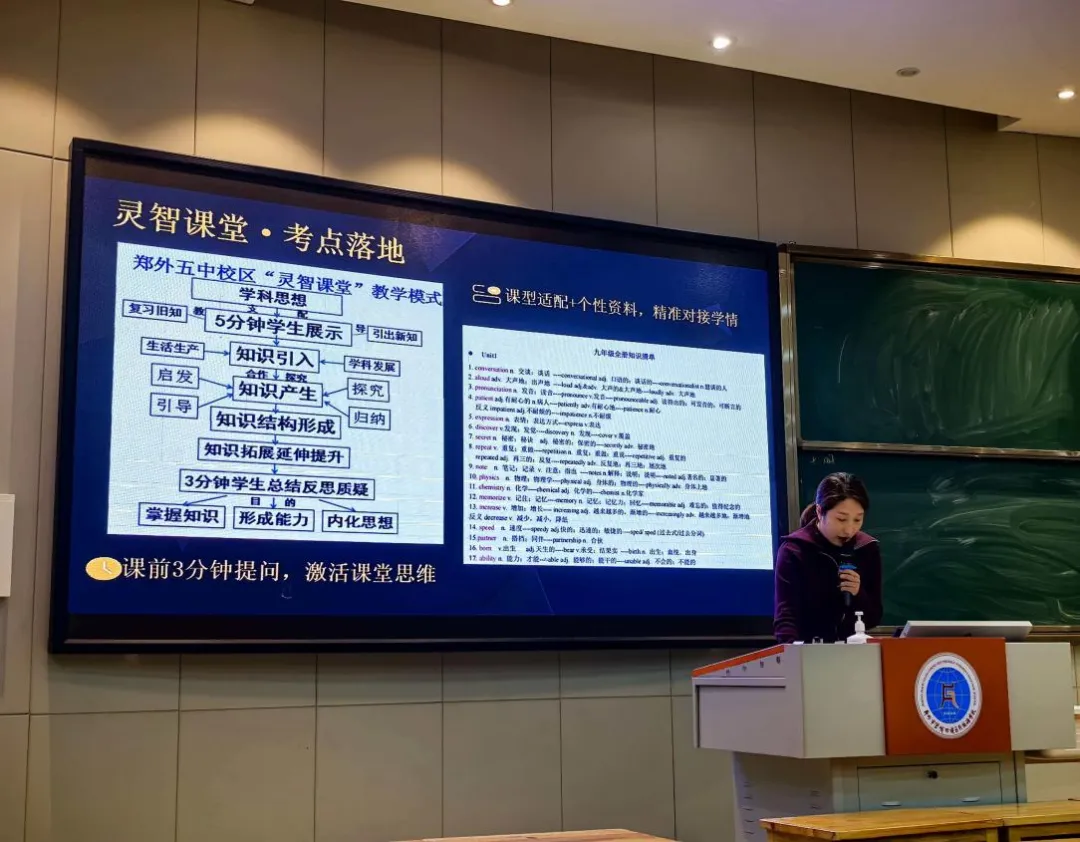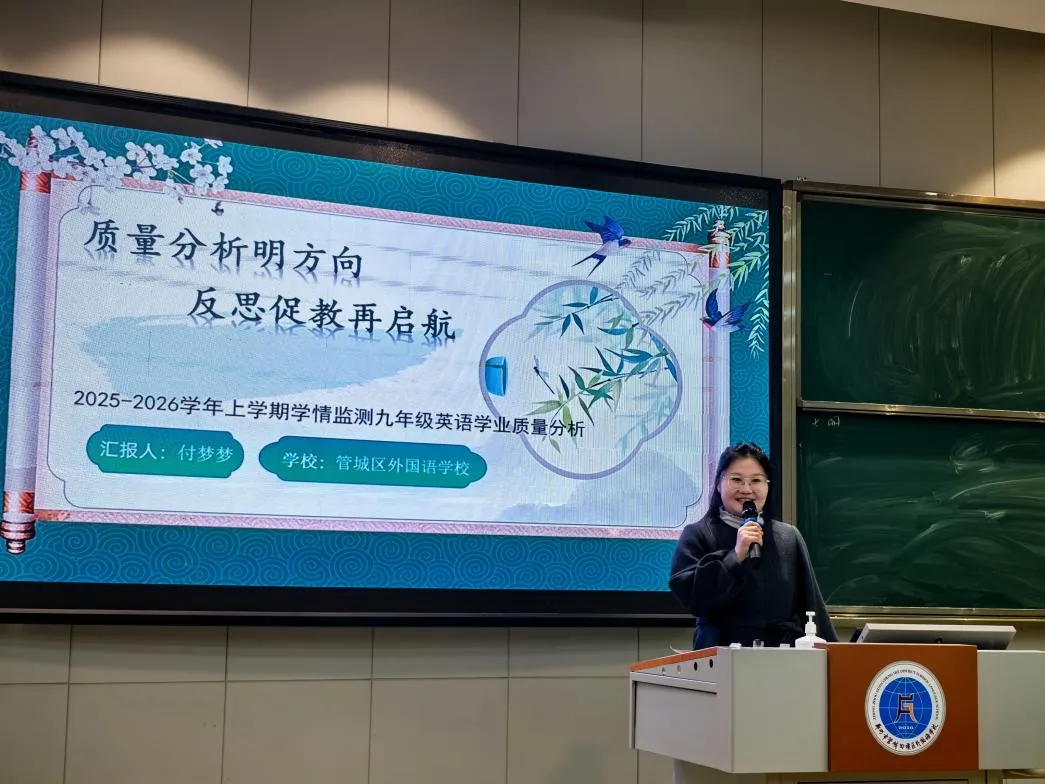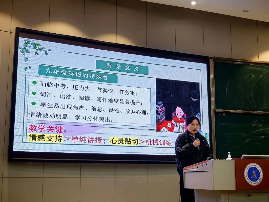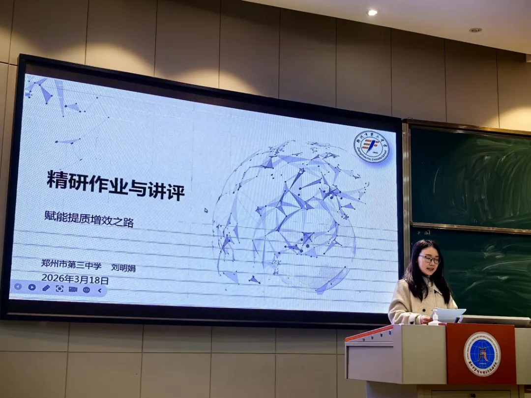 在九年级经验分享环节,郑州市第五中学张高斐老师以“灵智课堂”为抓手,通过课前激活、早读夯实、闭环授课与精准课后辅导,实现学生知识、能力与思想的递进提升;郑州市第三中学刘明娟老师精研作业与讲评,优化作业设计、聚焦错因反思,以评促教提质减负;管城回族区紫荆中学的蔡海霞老师以“以心聚情,以数据促学”为理念,借助成绩数据落地教学、加强课后陪伴,兼顾育人与提分;管城区外国语学校吕艺杰老师从教研引领、分阶段备考、分层教学及习惯心态培养四大维度,系统分享了中考英语高效备考经验。
