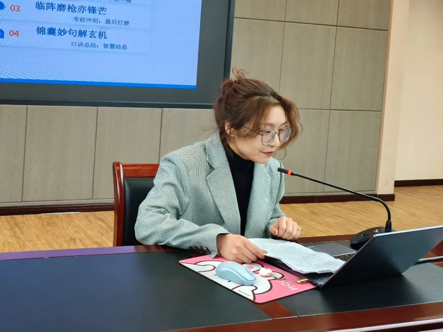 在七年级经验分享环节,来自区内四所学校的代表依次发言:郑州市第六十三中学的王玉晴老师分享了备课、上课与早读辅导的实操方法;管城回族区第二实验中学的赵晓亚老师带来了作业设计与试卷讲评的创新思路;管城回族区第三中学的桂慧慧老师交流了良好师生关系构建的实践经验;管城回族区凌云学校的禹璎哲老师则针对有效备考提出了务实建议。每位代表的分享干货满满,为一线教师提供了可借鉴的教学范本。
