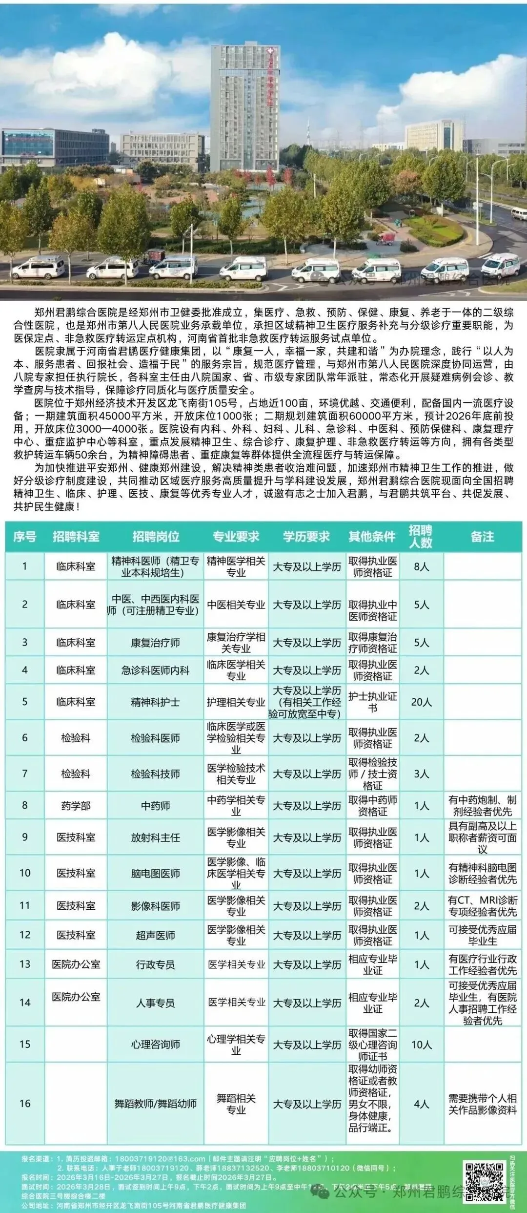 郑州君鹏综合医院诚聘英才!转岗培训、职称晋升、带薪年假… 多项硬核福利,职等你来!大型招聘活动第三批次招聘计划正式开启