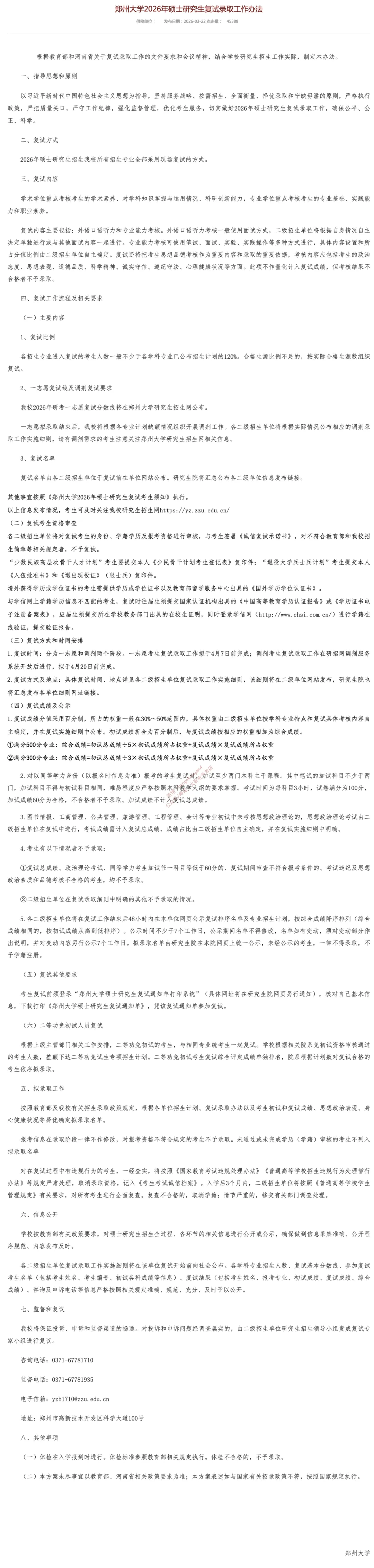 【郑州大学复试最新资讯】复试分数线、录取工作办法、考生须知、复试通知、复试名单汇总