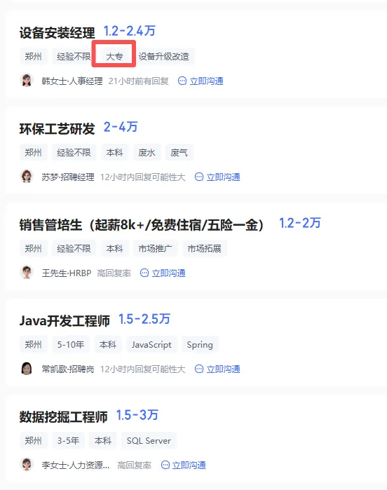 大专学历也有岗