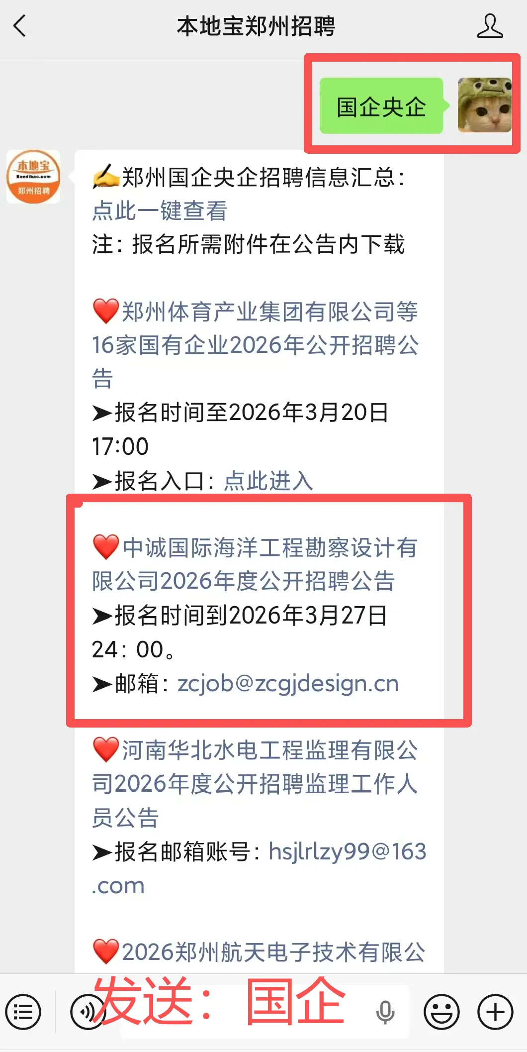 回复【国企】获取郑州国企招聘信息