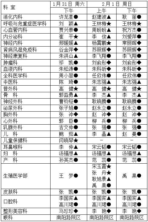 2.我院医师肩负着支援、外出会诊、学术活动、教学、进修、下乡等任务,门诊出诊以当天出诊医师为准,此表仅供参考。