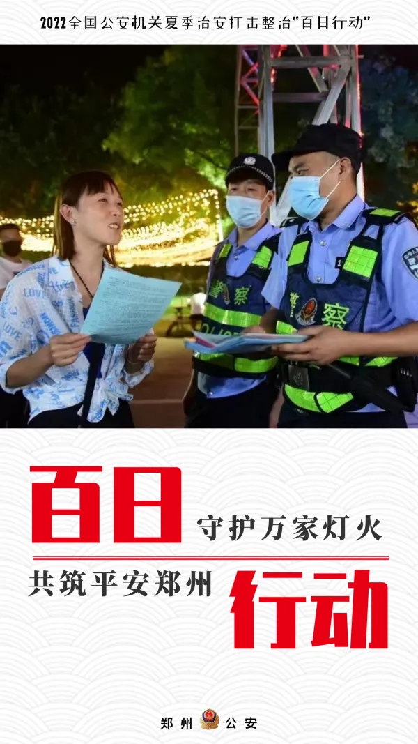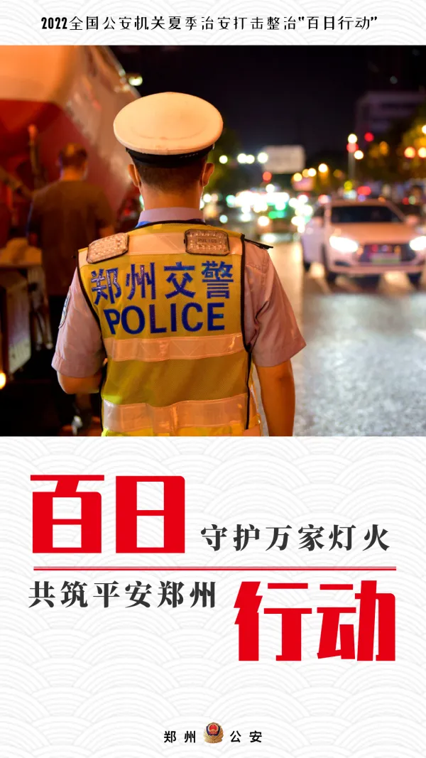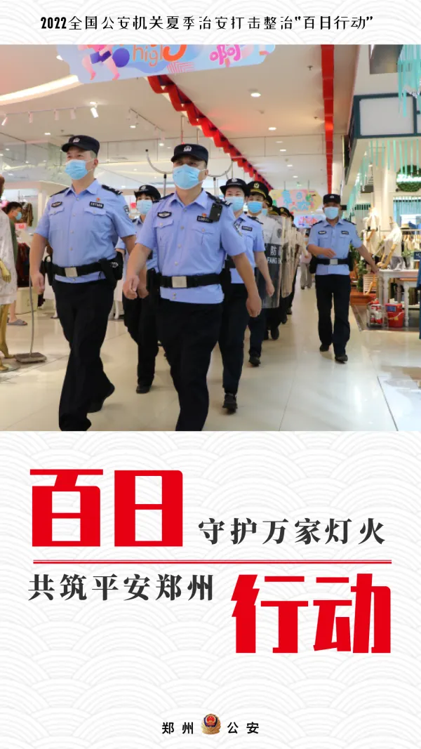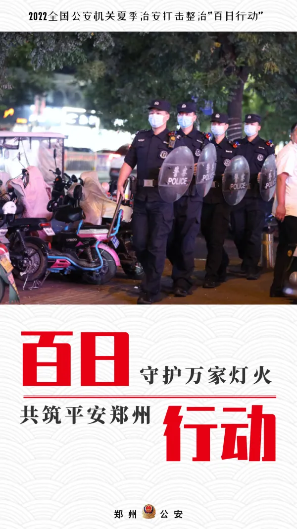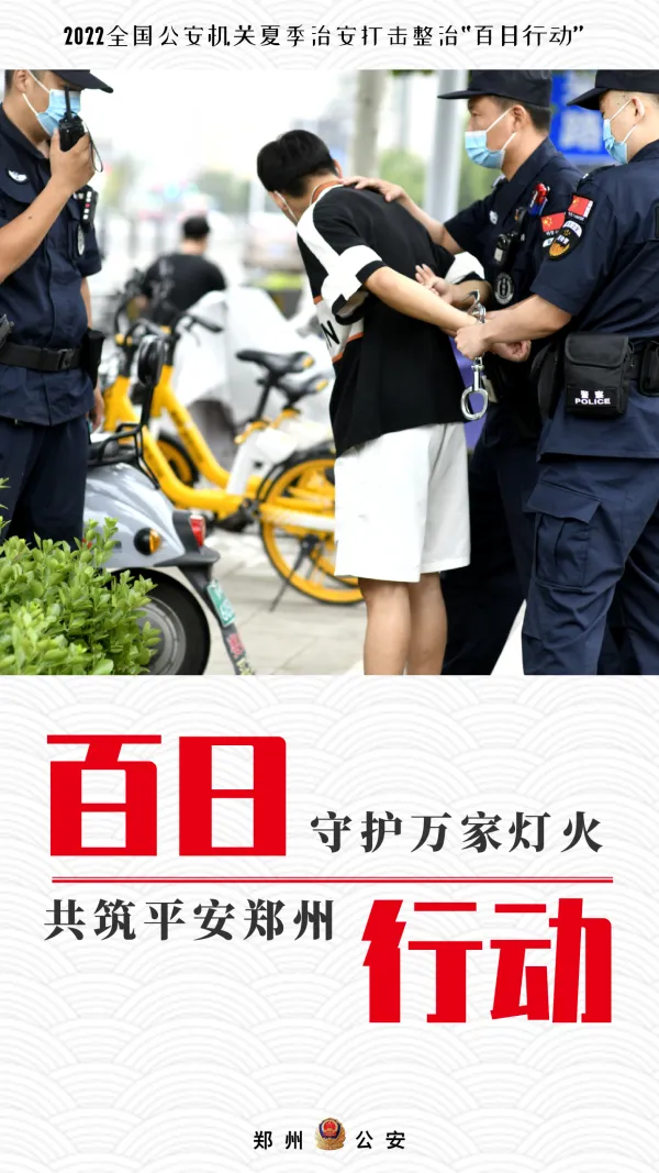 郑州市公安局持续推进夏季治安打击整治“百日行动”,重拳打击突出违法犯罪,大力整治社会治安秩序,攻坚化解各类风险隐患,警民携手共建平安和谐郑州。
