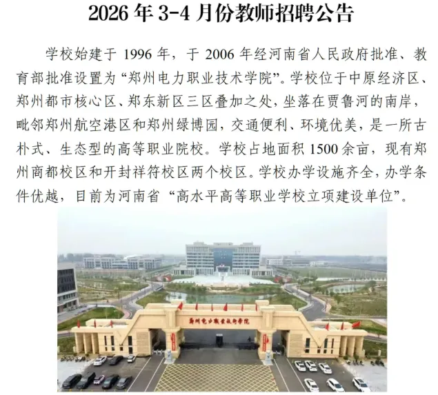 >【五险一金】郑州电力职业技术学院教师招聘21人,正在报名!