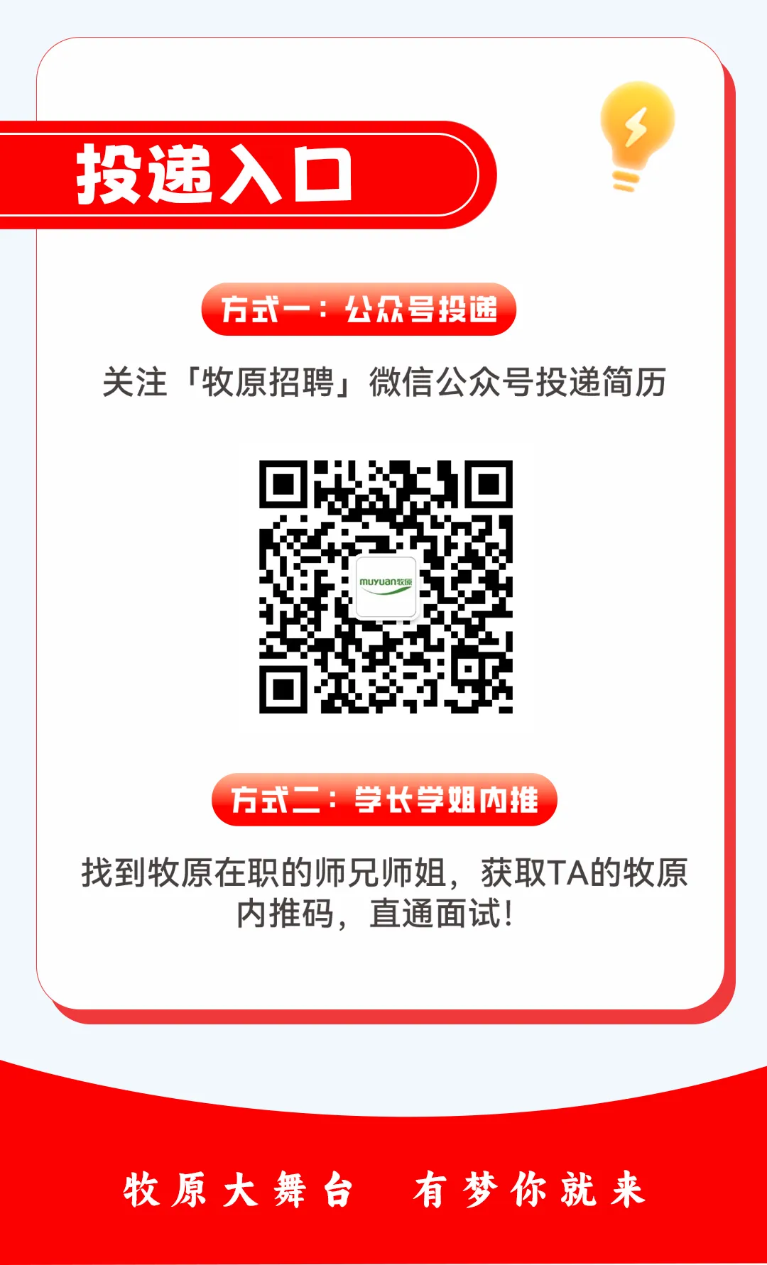 本篇文章转自:牧原招聘,文章版权归原作者所有。本行公众号编辑转载仅用于传递更多信息,如涉及作品内容、版权和其他问题,请在30日内与本公众号联系,我们将在第一时间删除内容!