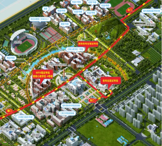 我院各专业研究生复试工作均在郑州大学主校区进行,地址为河南省郑州市高新区科学大道100号,校内考场请参阅导览图: