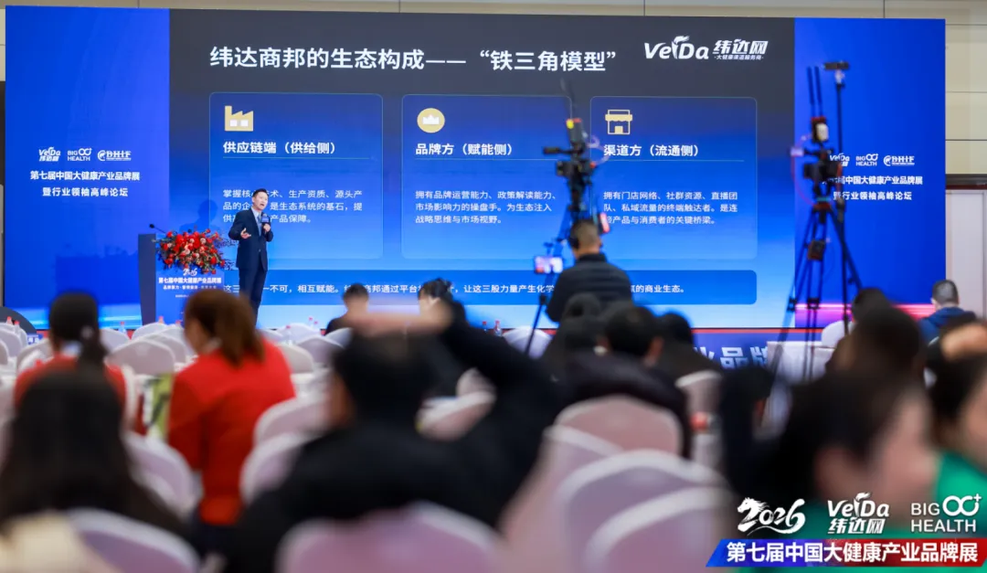 开幕式上,胡艳鹏发表主旨演讲,直击行业痛点、前瞻产业趋势,引发全场强烈共鸣。他指出,当前大健康行业正面临“产品同质化加剧、渠道效率下滑、合规成本攀升”三大突围难题,而破局的核心在于重构渠道价值、打造精准对接生态、实现轻量化增长。