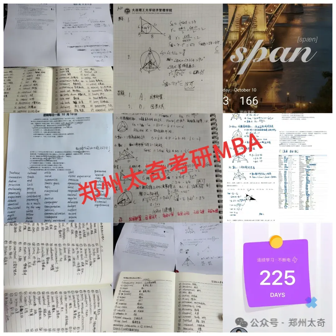 郑州太奇考研服务团队由一批深耕行业八年以上的辅导团队组成,是一支专业、专注、有温度的陪伴式团队。凭借对管理类联考专业的深入理解与扎实功底,我们已助力众多学员成功步入研究生殿堂。