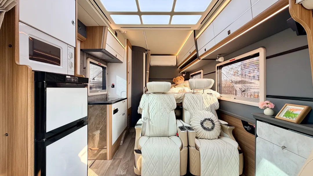 福顺T型小额头:主打高性价比,蓝牌C照轻松驾驭。内饰温馨实用,每一寸空间都被合理利用,基础生活配置齐全,满足日常旅居所需,无论是房车新手入门,还是周末短途出行,都是高性价比之选,闭眼冲不踩雷。