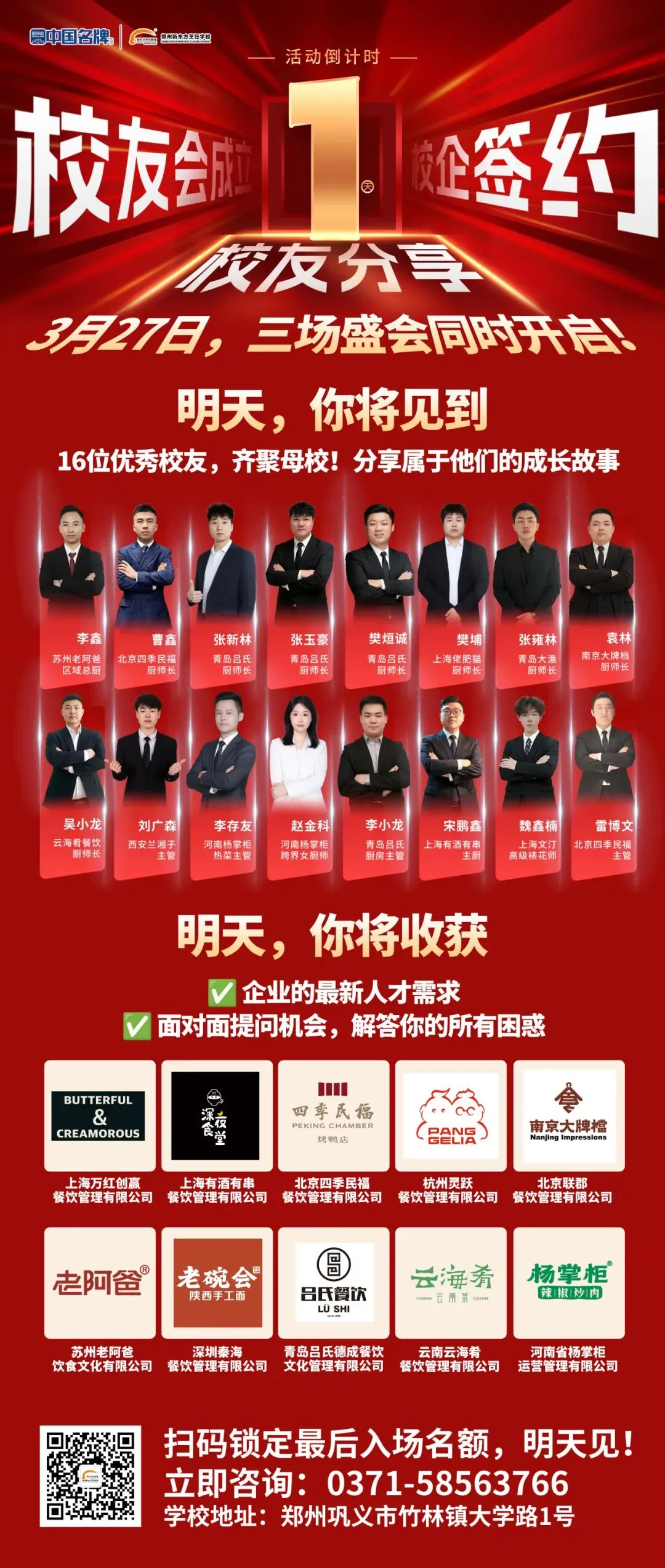 明天(3月27日),郑州新东方烹饪学校“匠心育桃李·校企筑未来”2026年校友会成立揭牌暨校企合作签约仪式 即将举行!