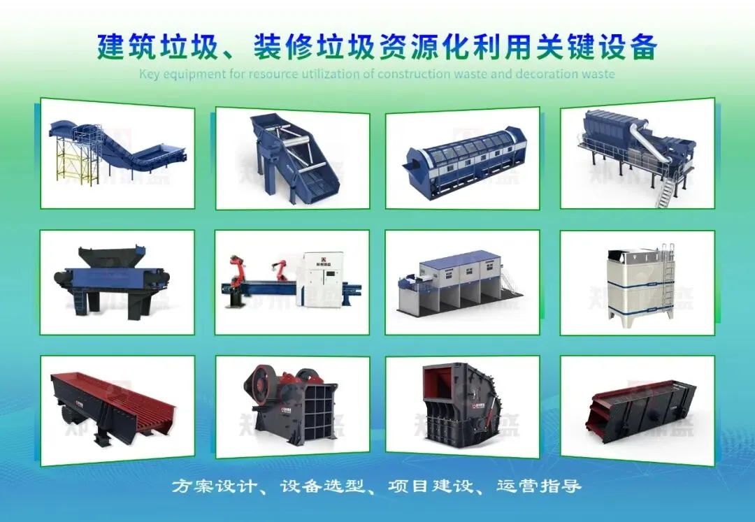 03 关于鼎盛郑州鼎盛在建筑垃圾、装修垃圾资源化利用领域实力雄厚,结合国内外技术、工艺,对建筑垃圾资源化利用的喂料、破碎、筛分、轻物质分选、渣土剥离、人工分拣及智能分拣等各个环节进行全面系统的研究和开发,推出了更适合我国国情的建筑垃圾、装修垃圾资源化利用设备。尤其在轻杂质分选设备研发、制造方面成果丰硕,先后推出的建筑垃圾专用破碎机、第四代卧式打散风选机、4.5 代预精筛风选一体机等先进设备,使用效果良好。