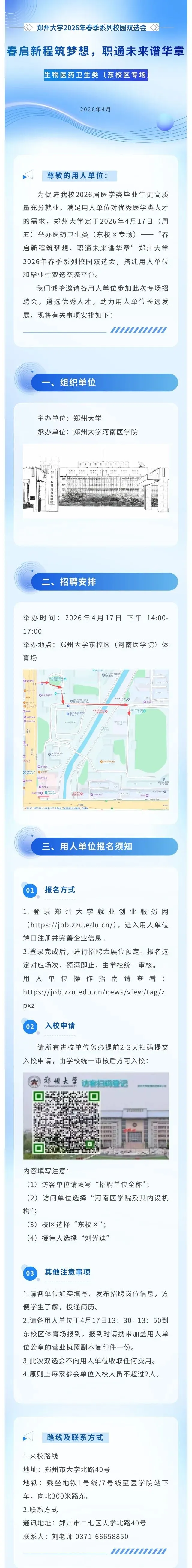 >邀请函|郑州大学2026年春季系列校园双选会生物医药卫生类(东校区专场)