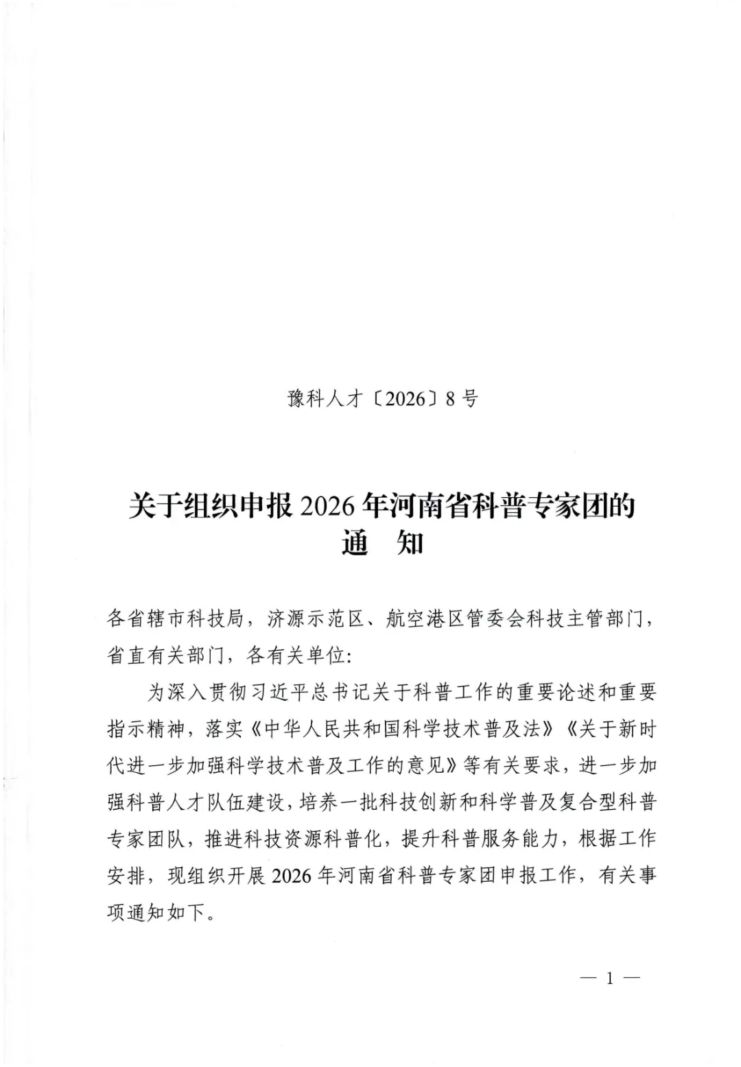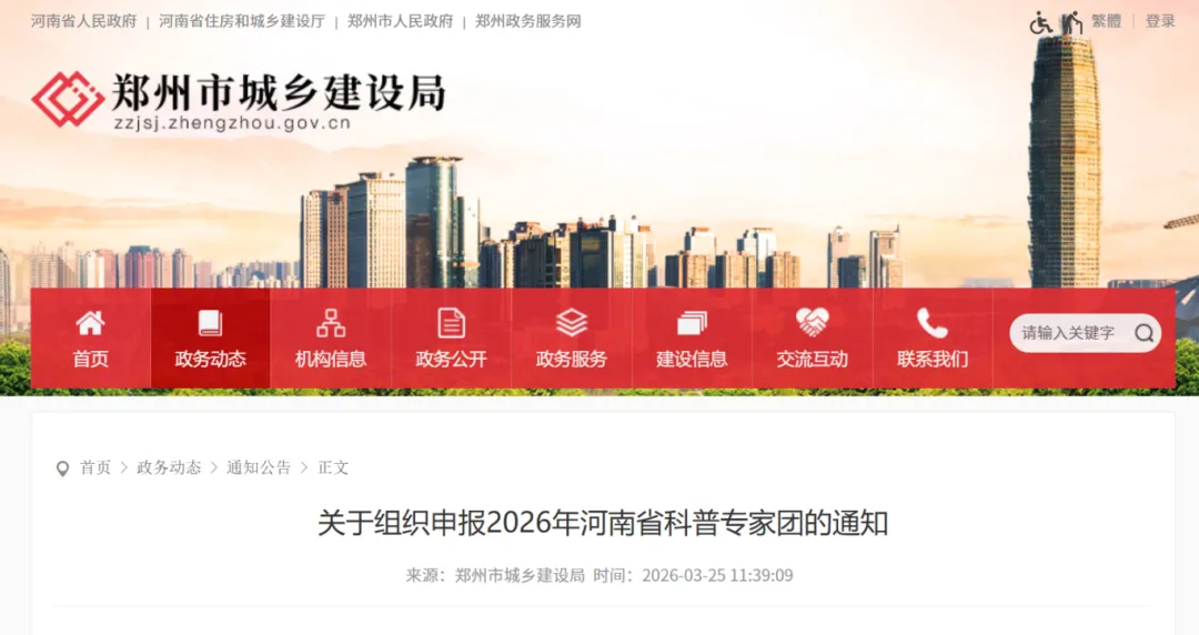 近日,郑州城建局印发《关于组织申报2026年河南省科普专家团的通知》,4月3日前,征集全市城乡建设领域科普专家团。